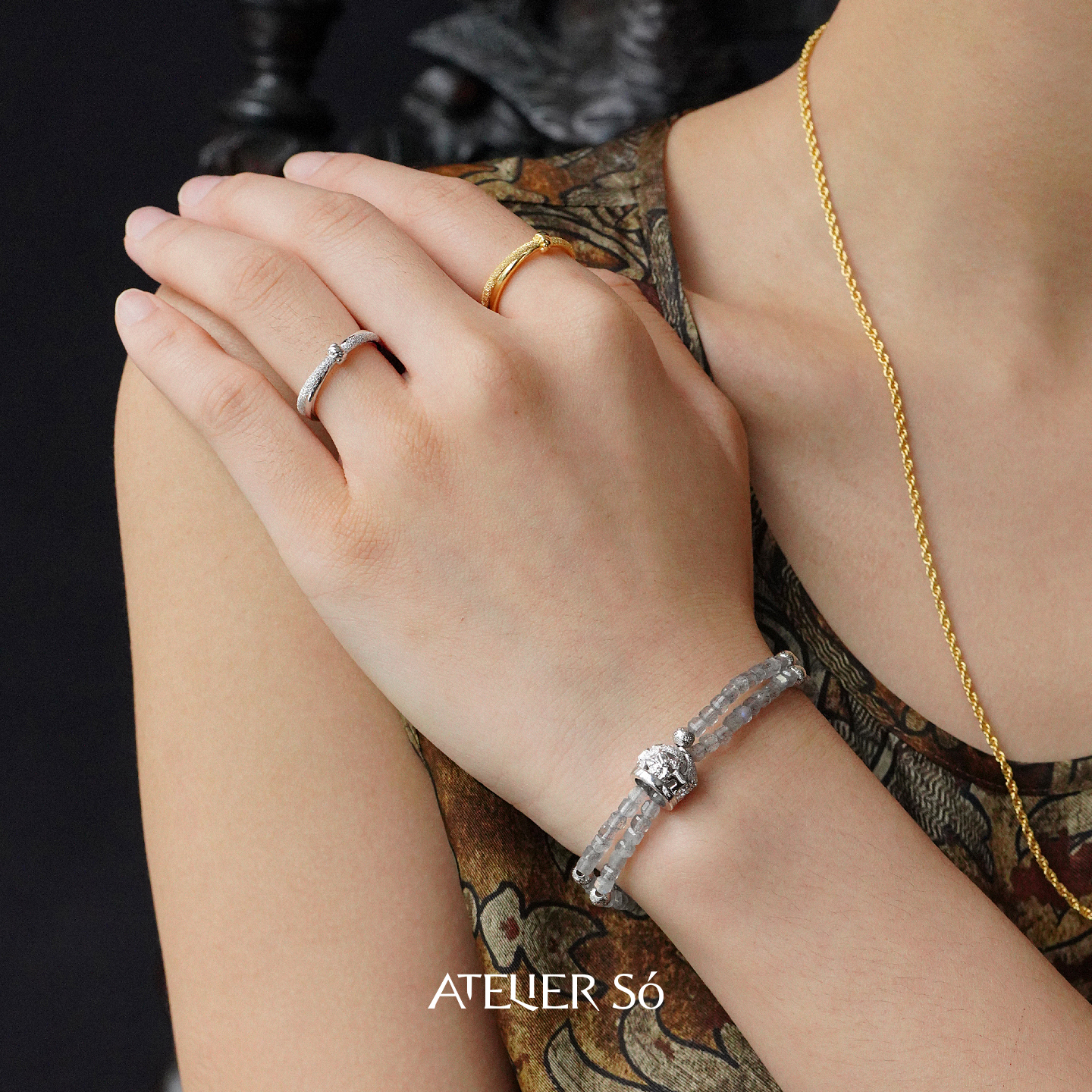 ATELIERSO倪索 编织钉砂细戒指 纯银磨砂原创设计师小众气质 默叙