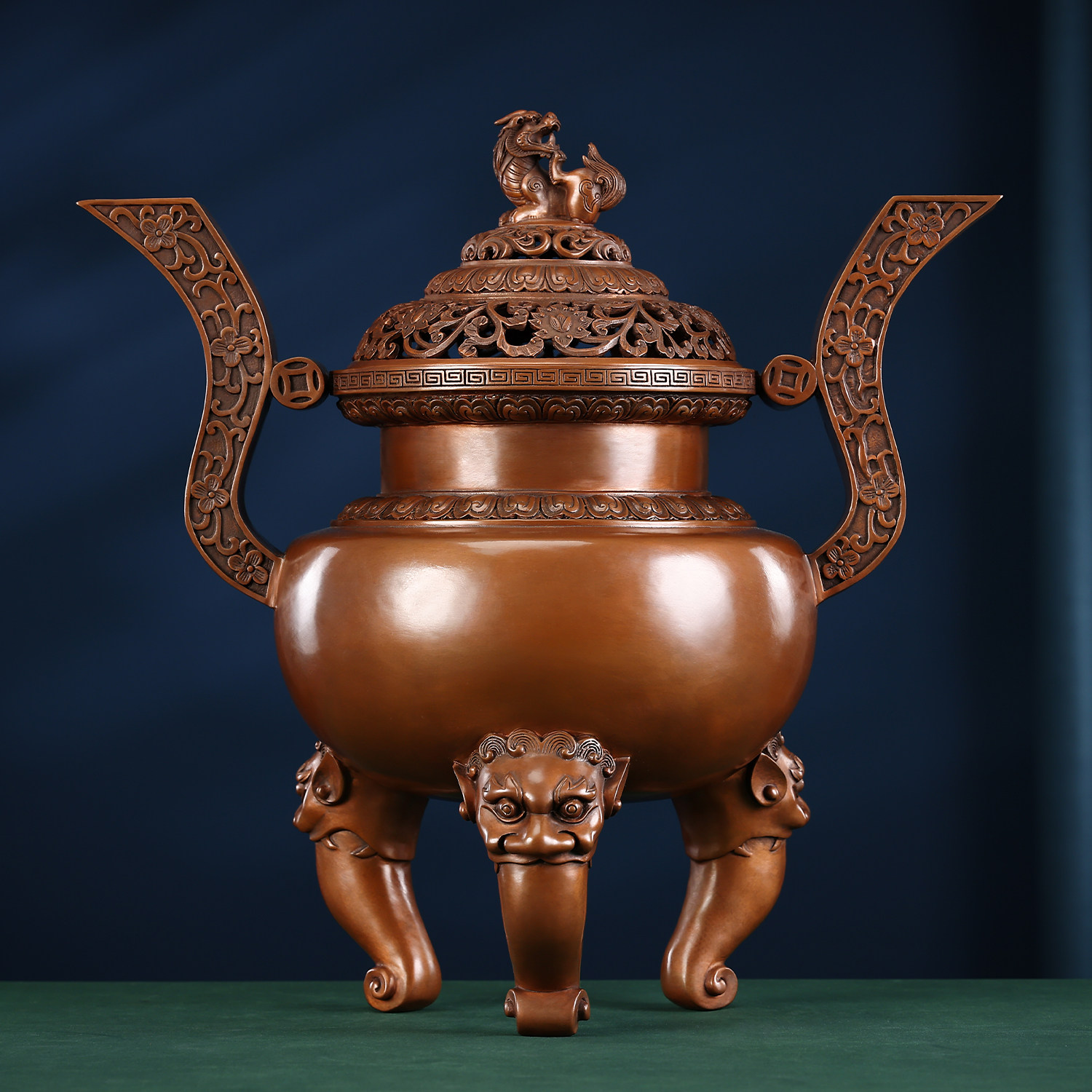 铜欣祥紫铜五供摆件家居装饰品静室香案摆设家用香炉烛台花瓶套装