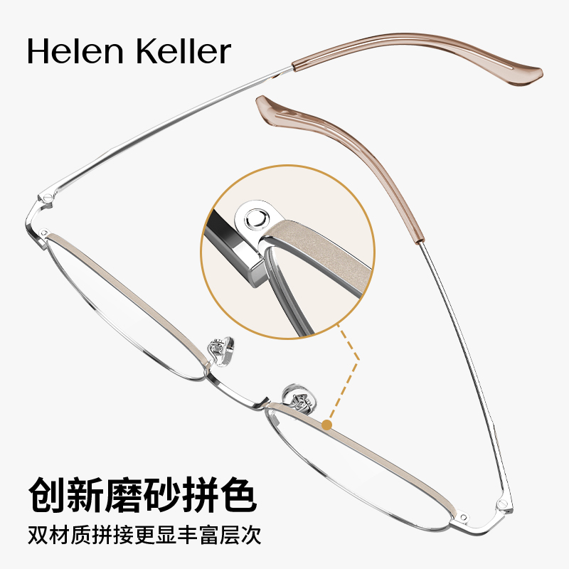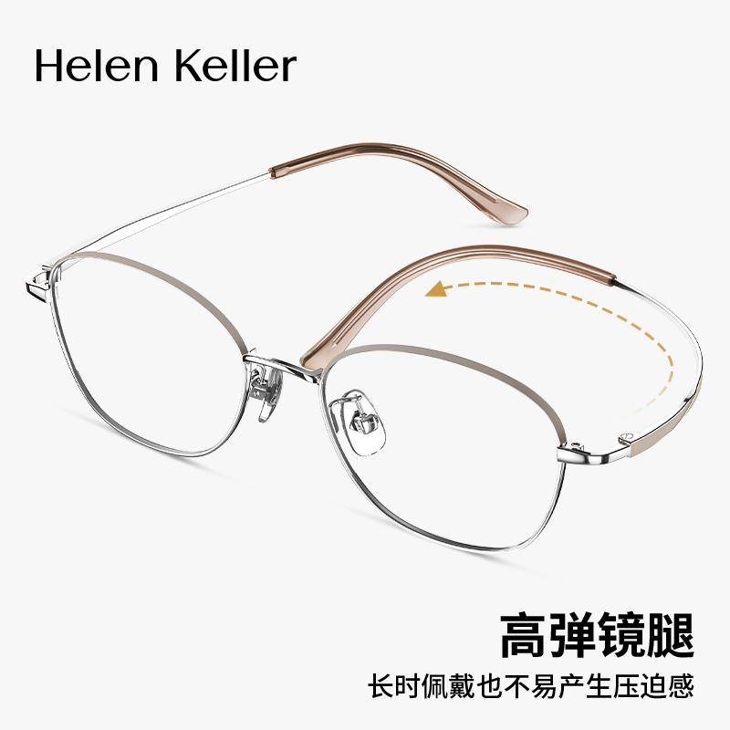 海伦凯勒新款耐弯折超轻细框光学框可配高度数女钛合金眼镜H9375