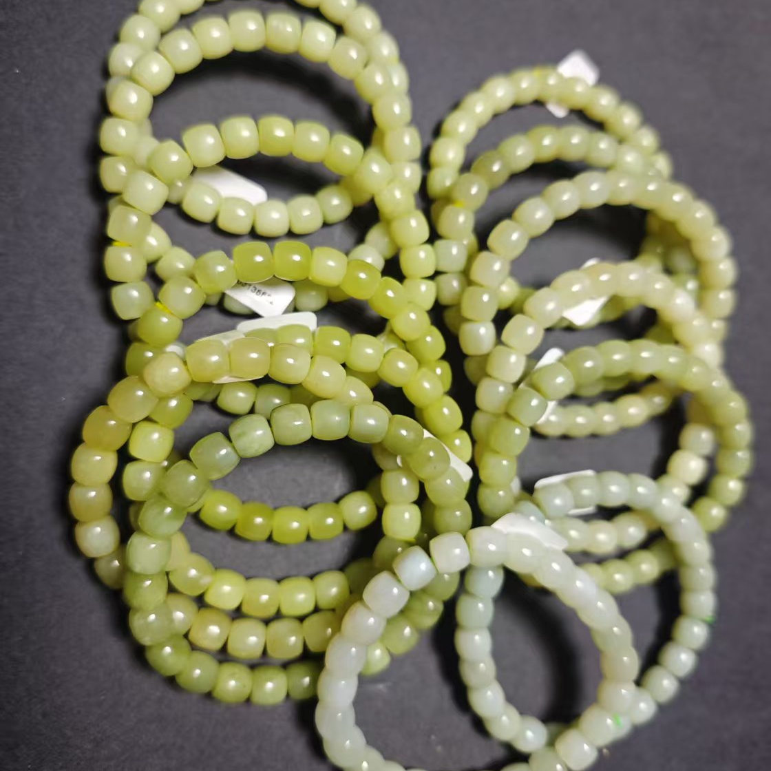 天然和田玉老型古墩珠糖冰白晴料手链串配饰情人节生日礼物送证书