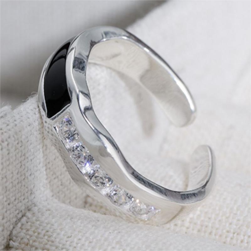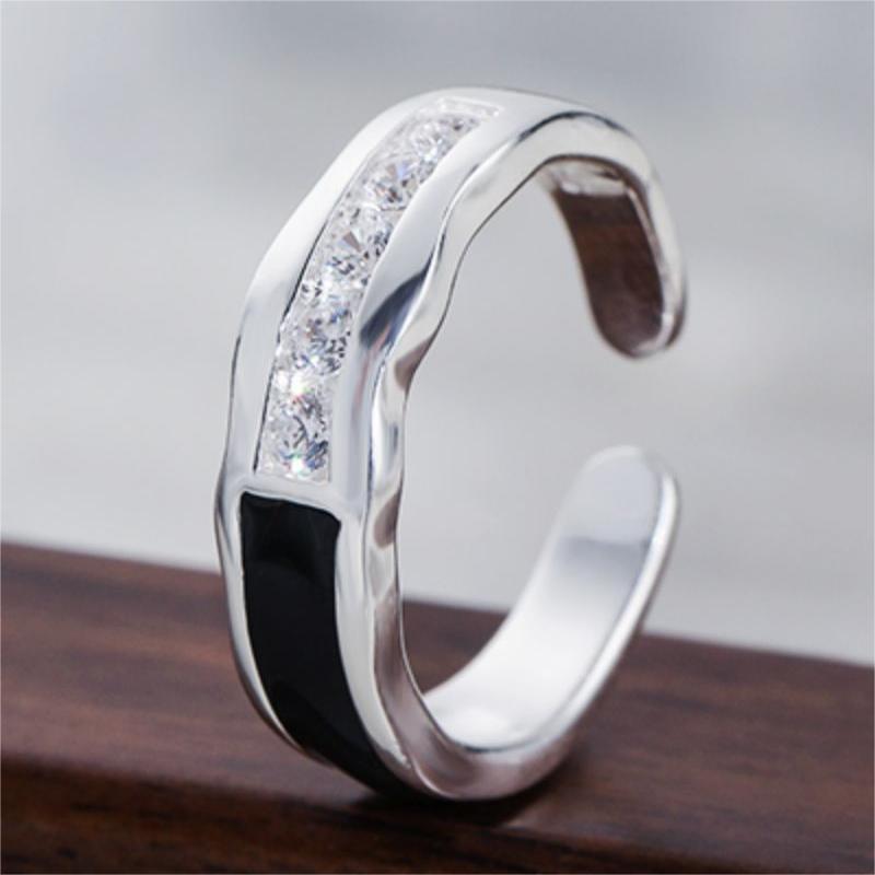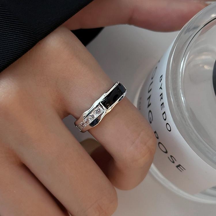 黑色镶钻戒指女时尚轻奢S925纯银个性小众设计新款潮开口指环8-29