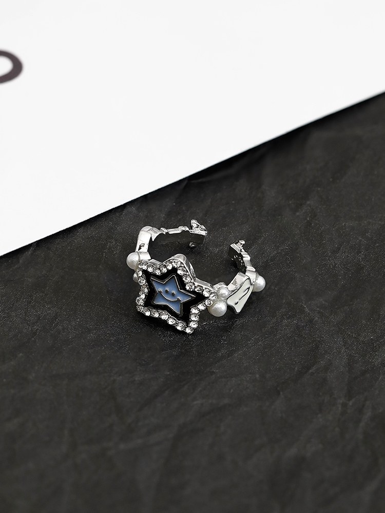 潮牌高级感时尚个性食指女蓝色幸运星戒指男小众设计可调节指环