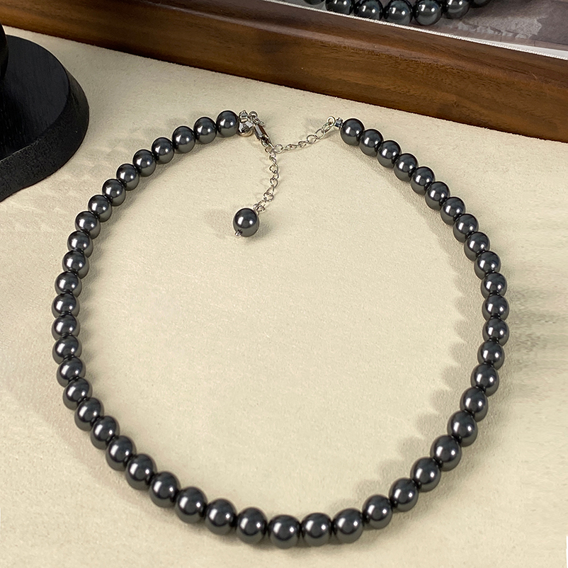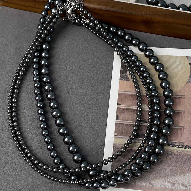 施家真多麻灰色珍珠项链女正品大溪地黑秋冬2025新款爆款毛衣颈链