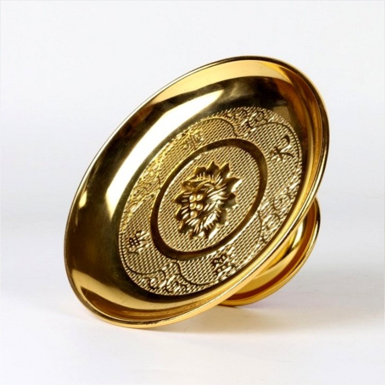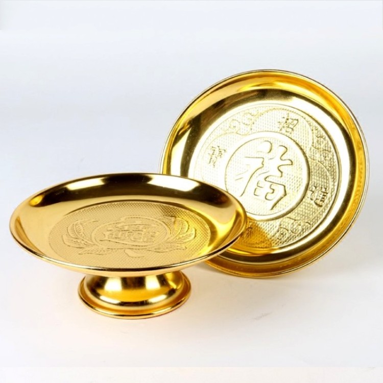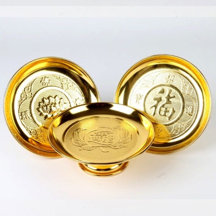 速发佛具鎏金供盘莲观水果盘家用花音财神仙干家果碟托盘贡碟摆件