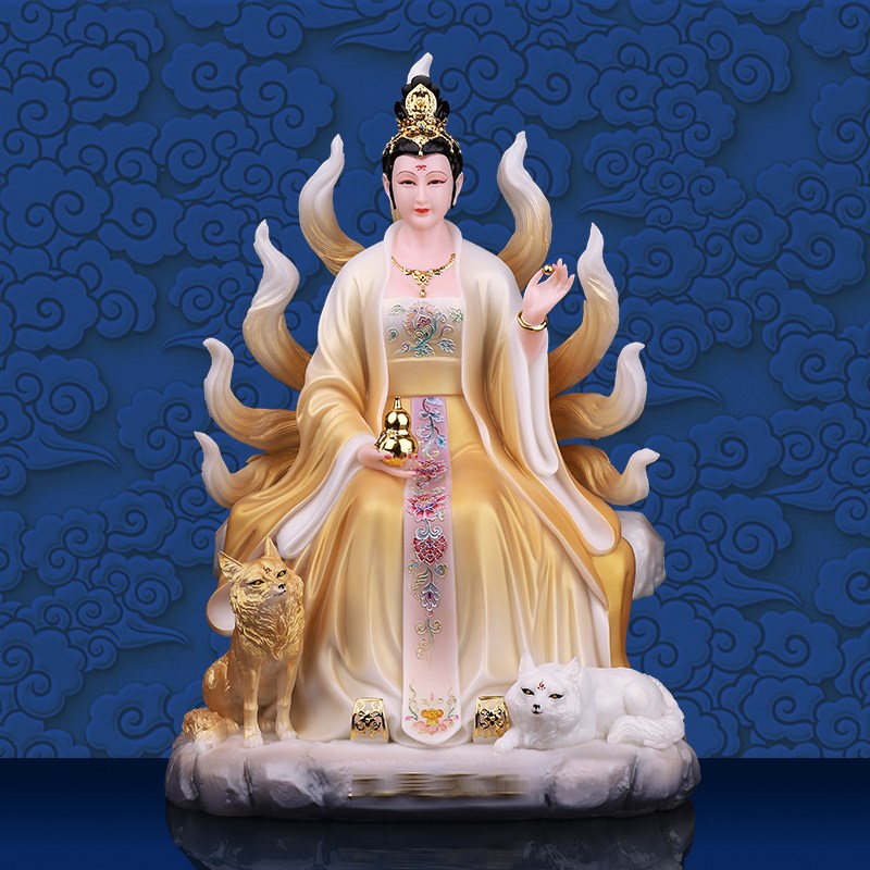 九尾狐像红色九姑娘实心汉白玉九尾D娘娘神像双狐九尾白狐九尾真