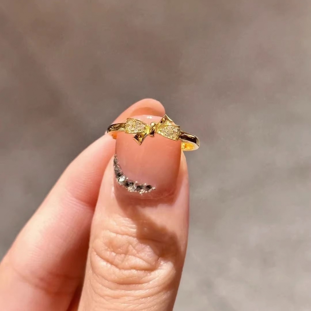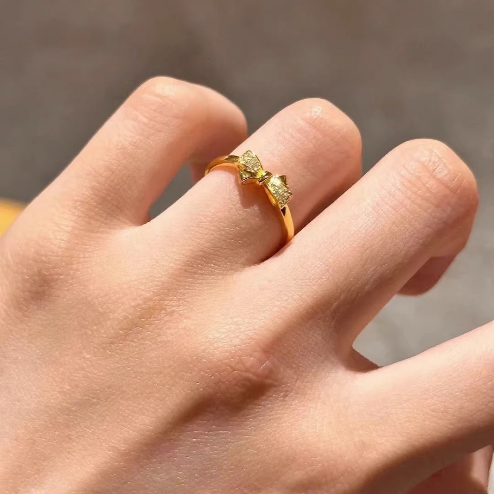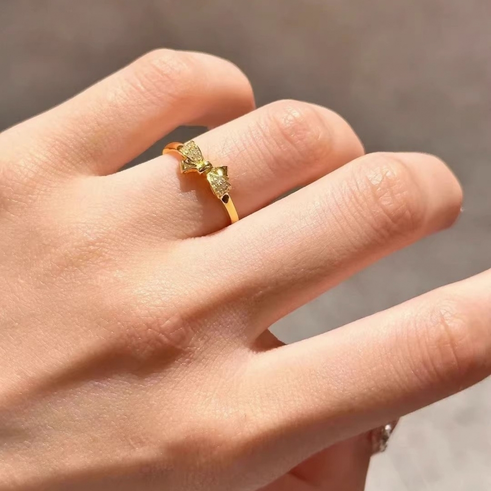 黄金色轻奢镶嵌钻石蝴蝶结金色戒指轻奢时尚小众设计轻奢精致指环