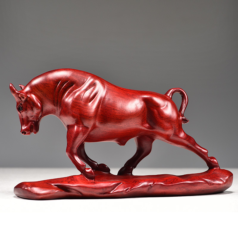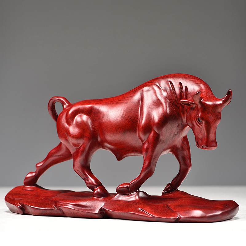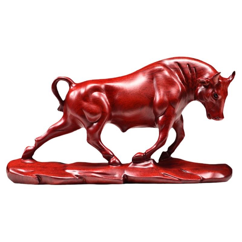 红色木质牛摆件实木雕刻华尔街牛生肖吉祥物饰品桌面摆设红木工艺