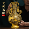 全铜龙凤花瓶摆件一对客厅电视柜办公室黄铜制工艺品开业乔迁礼品