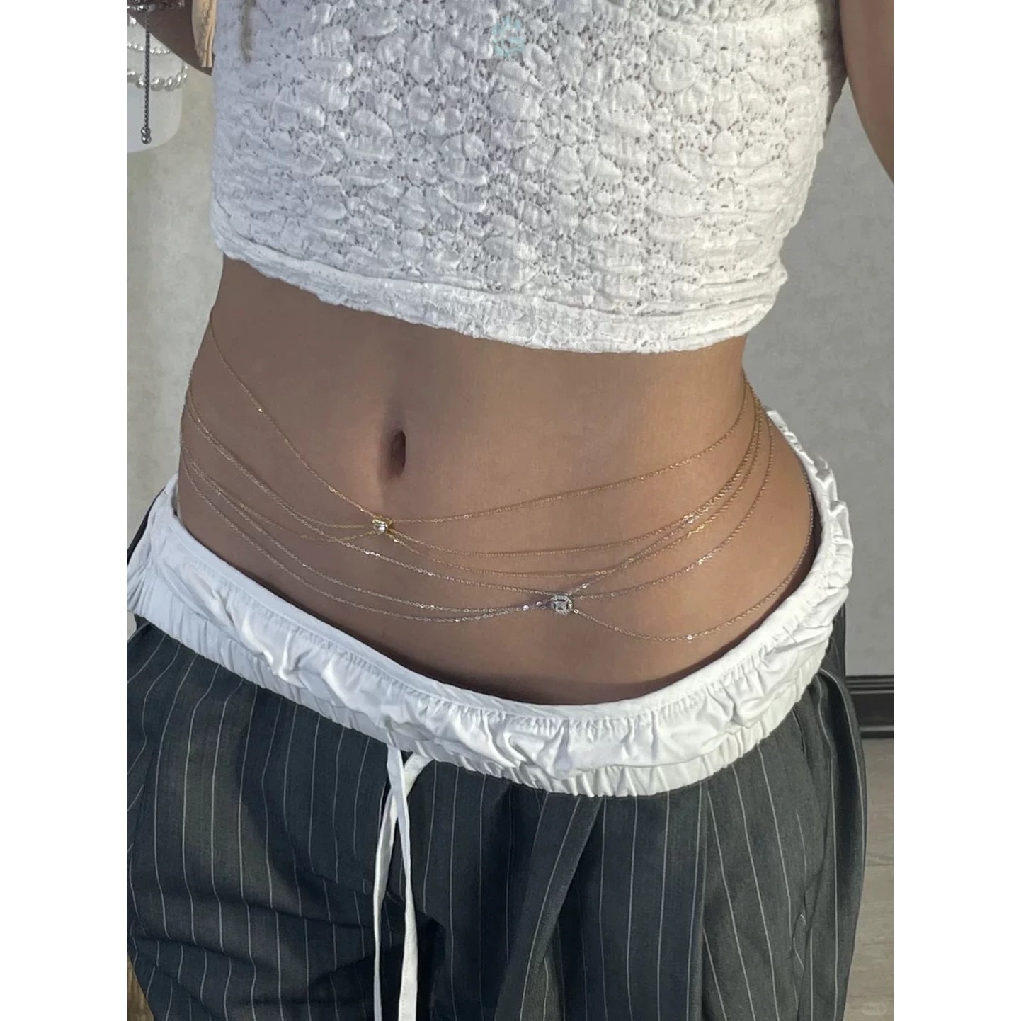 性感辣妹小香风腰链配饰多层金属水钻链条牛仔裤裙子细腰带腰链