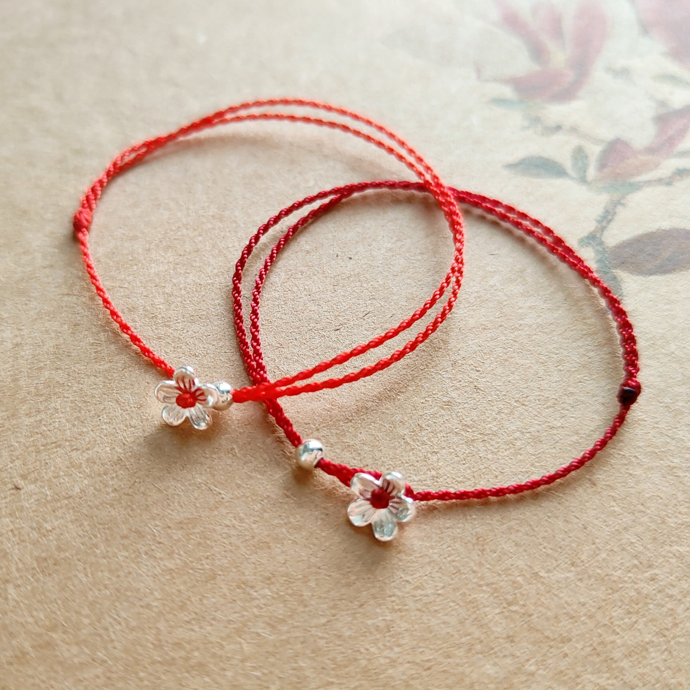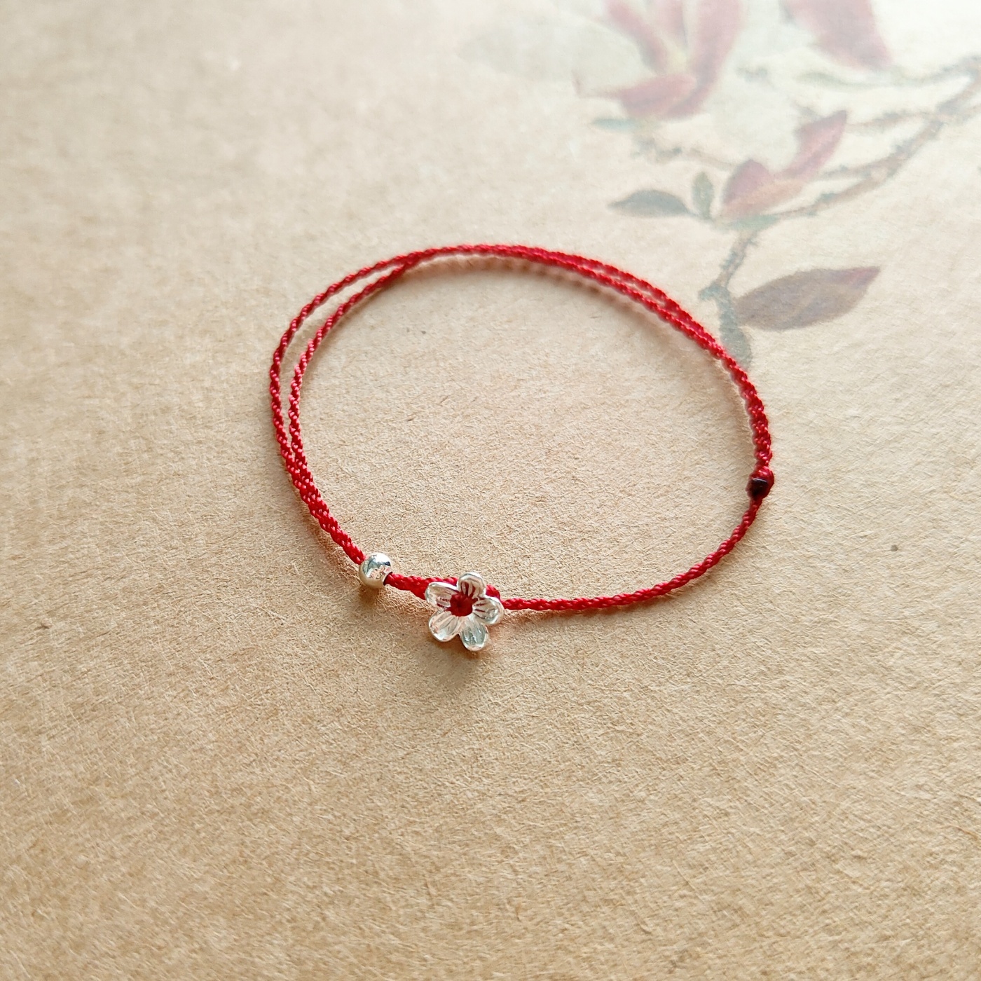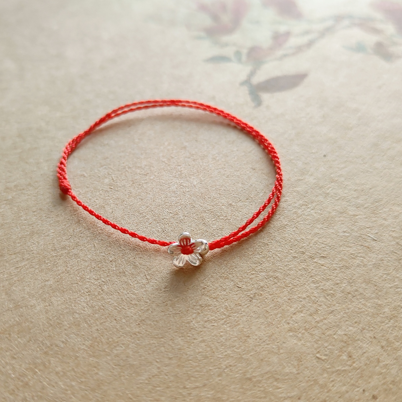 向阳花 精致925银小花红极细手绳女编织文艺气质复古百搭学生礼物