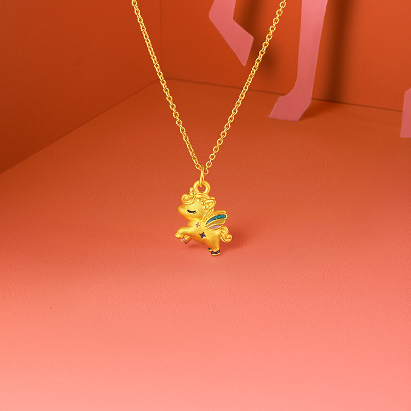 周六福黄金吊坠女飞天马生肖马系列5D硬金珐琅定价旗舰店圣诞礼物