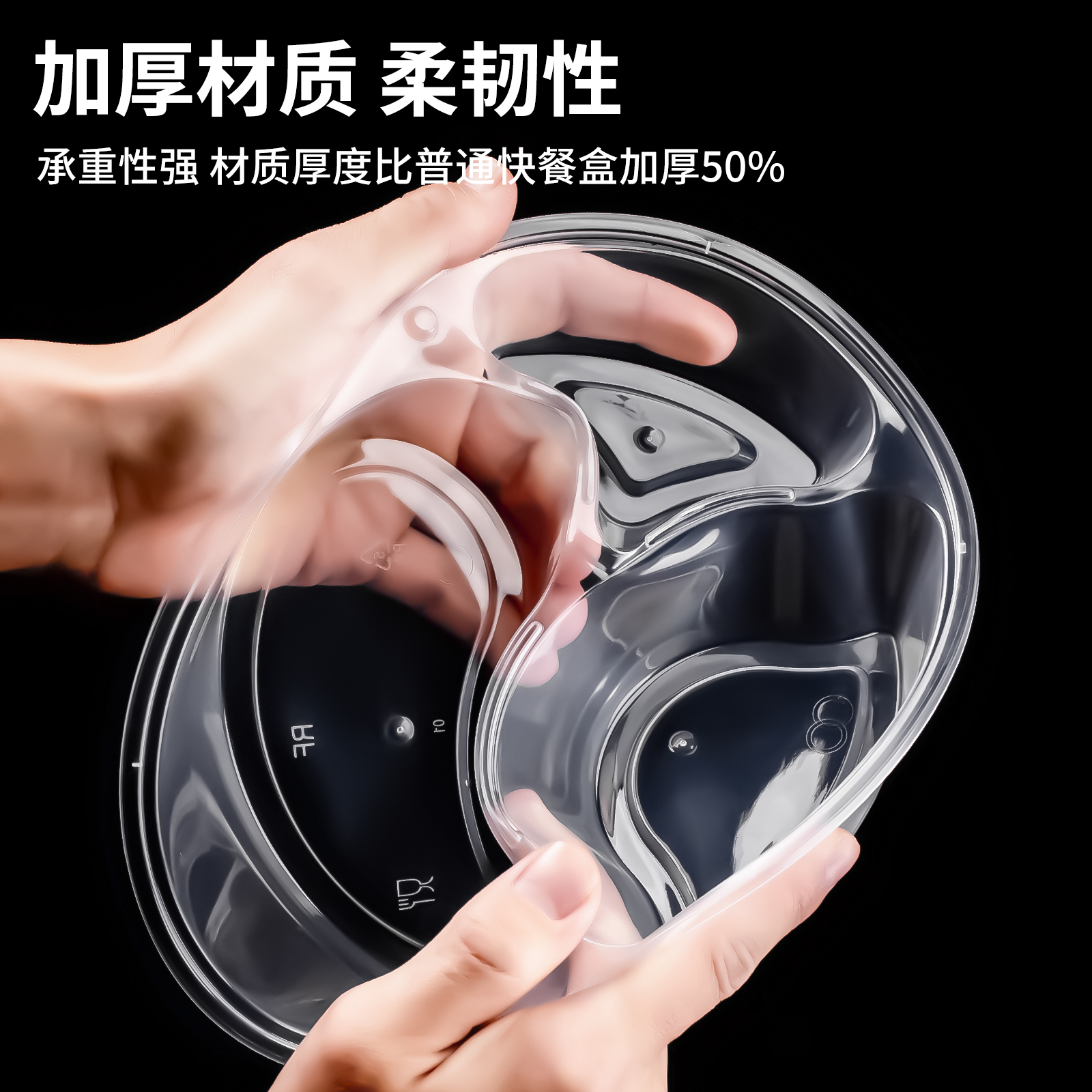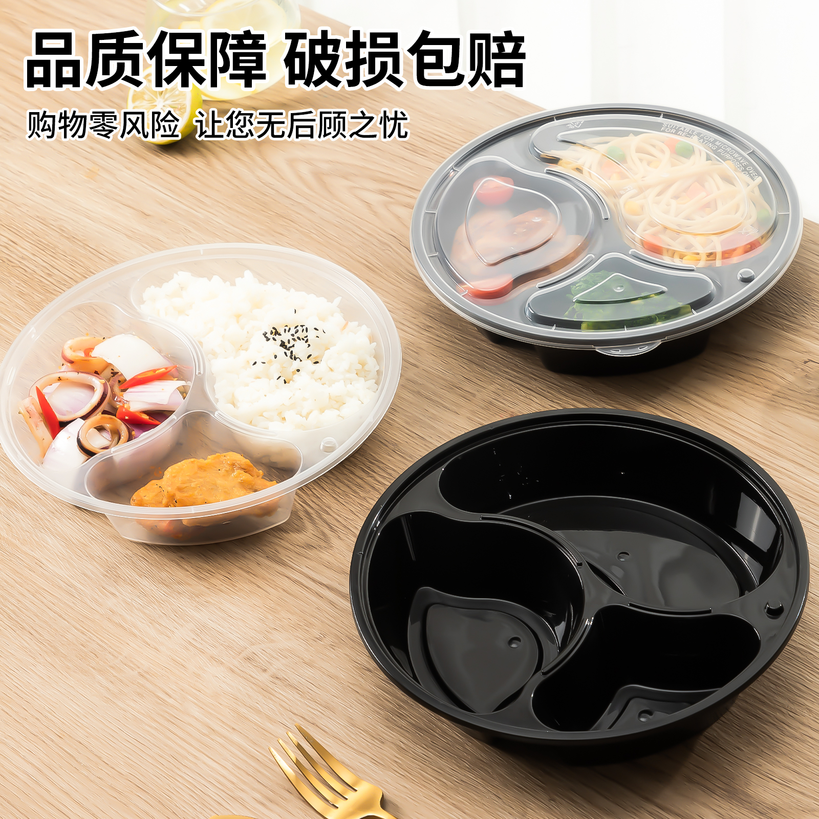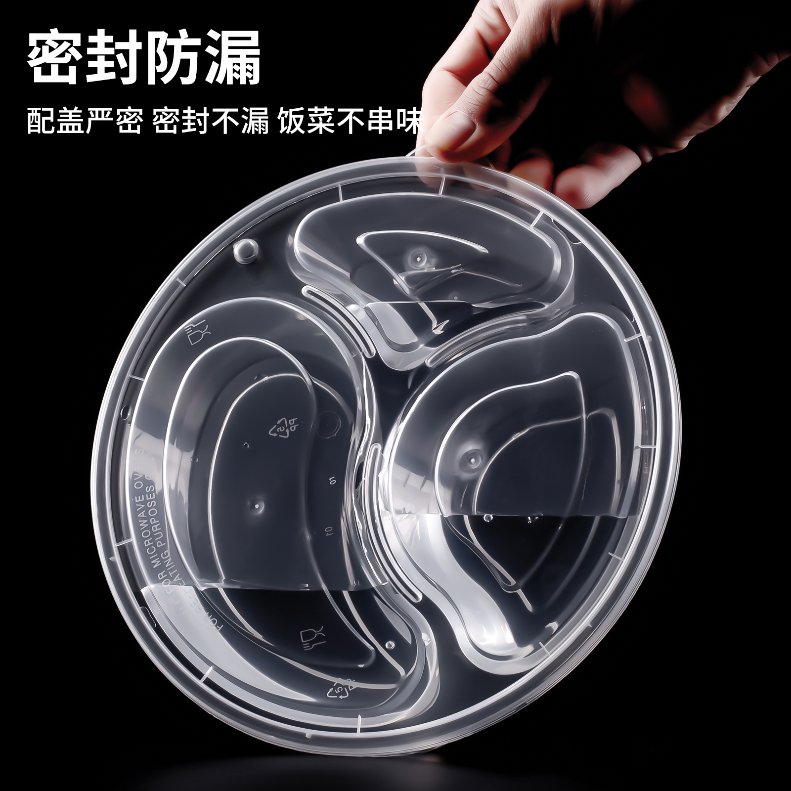 迅胜一次性餐盒圆三格外卖打包盒分格快餐盒塑料透明加厚便当饭盒