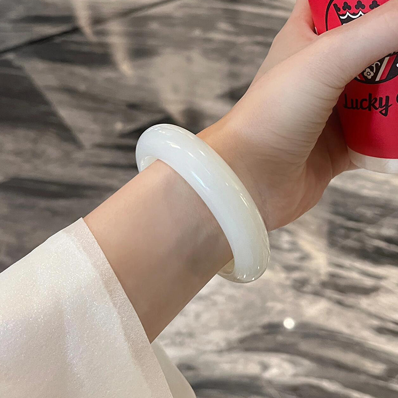 慕公子"霜晴寒晓"和田玉羊脂白玉晴水平替冰种飘花阿富汗玉手镯子