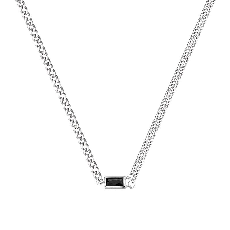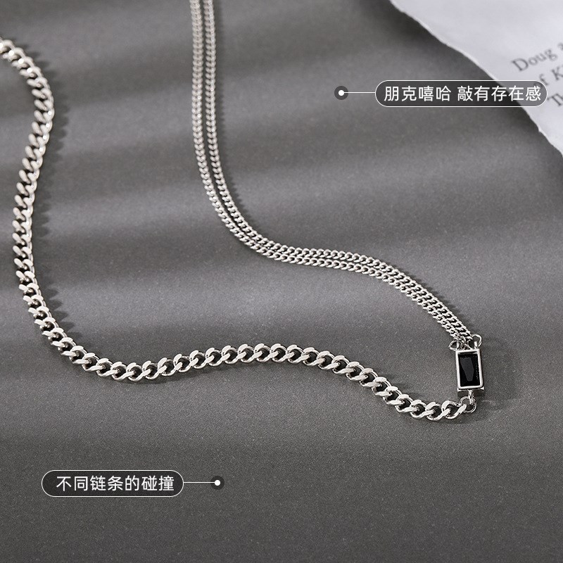 黑色方牌项链2024年新款女项链E女高级设计感小众锁骨链颈链