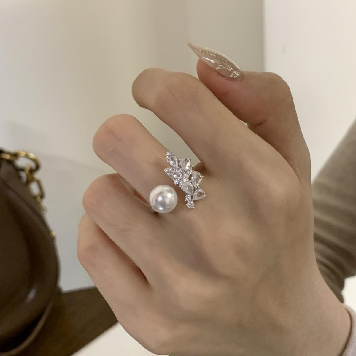 满钻闪钻锆石树叶珍珠戒指女小清新设计感轻奢小众高级食指戒指环