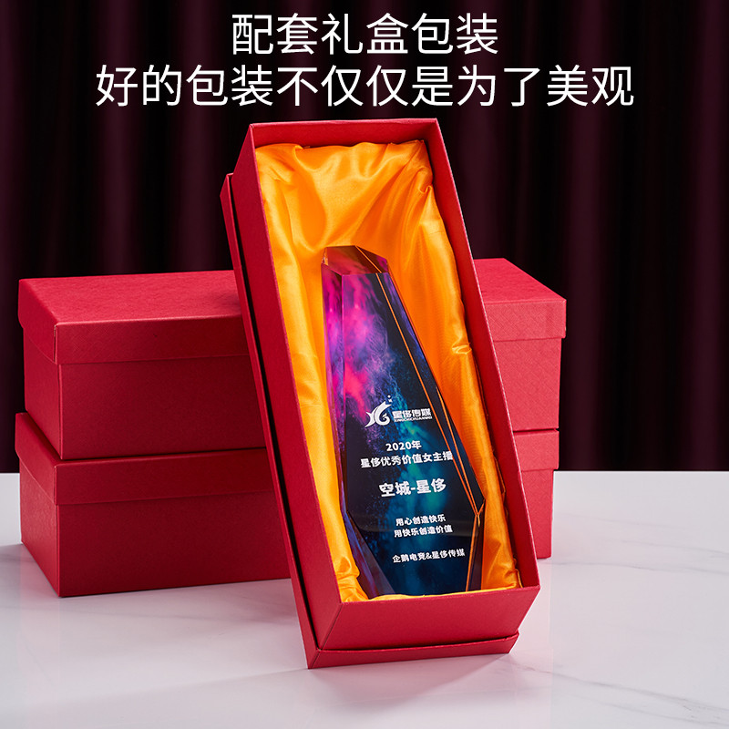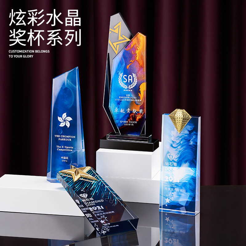 彩印水晶奖杯定制奖牌定做年会创意奖杯优秀员工颁奖冠军纪念品