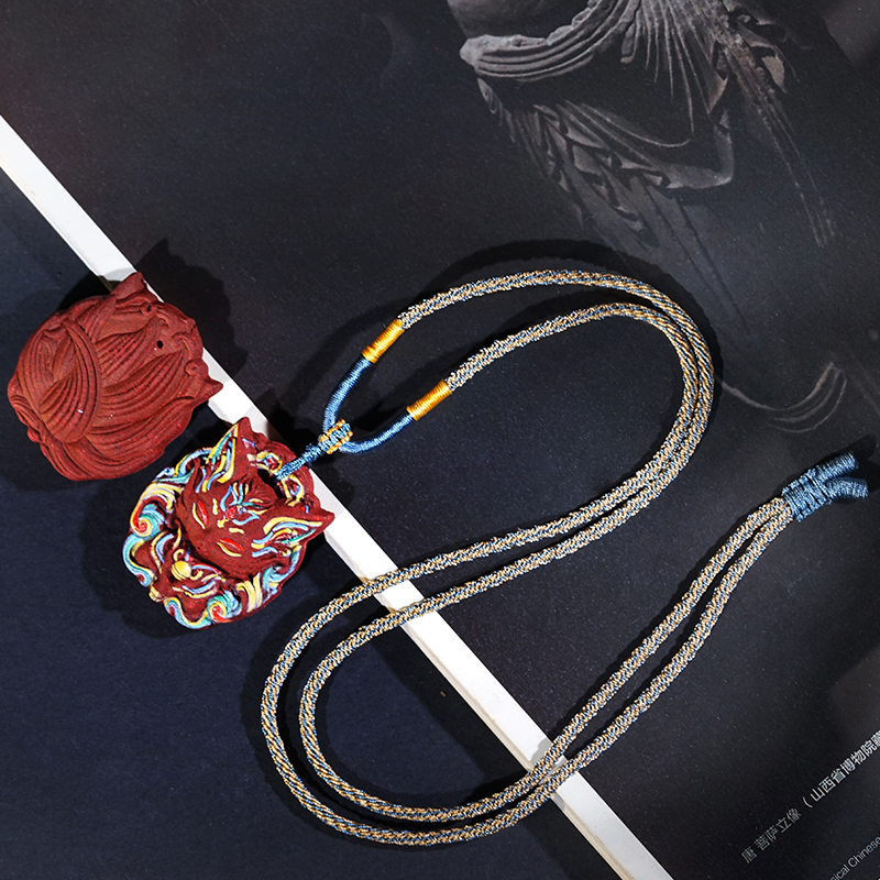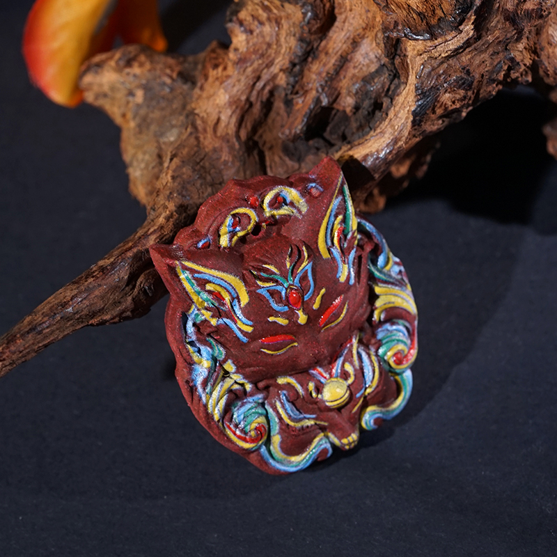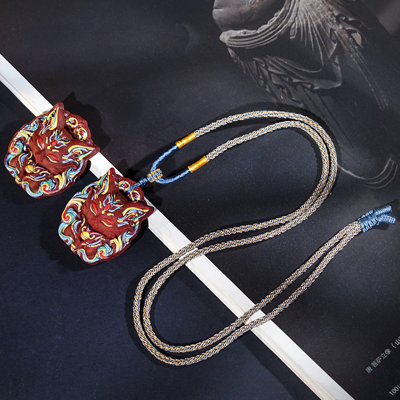 合香牌雕刻彩绘九尾狐吊坠项链平安牌合香珠配饰文玩挂件毛衣链