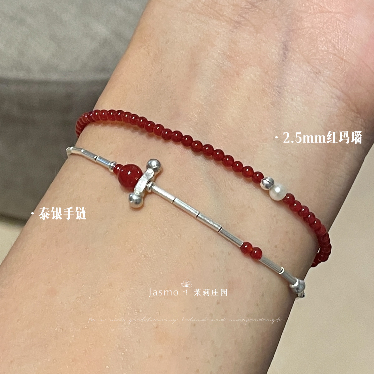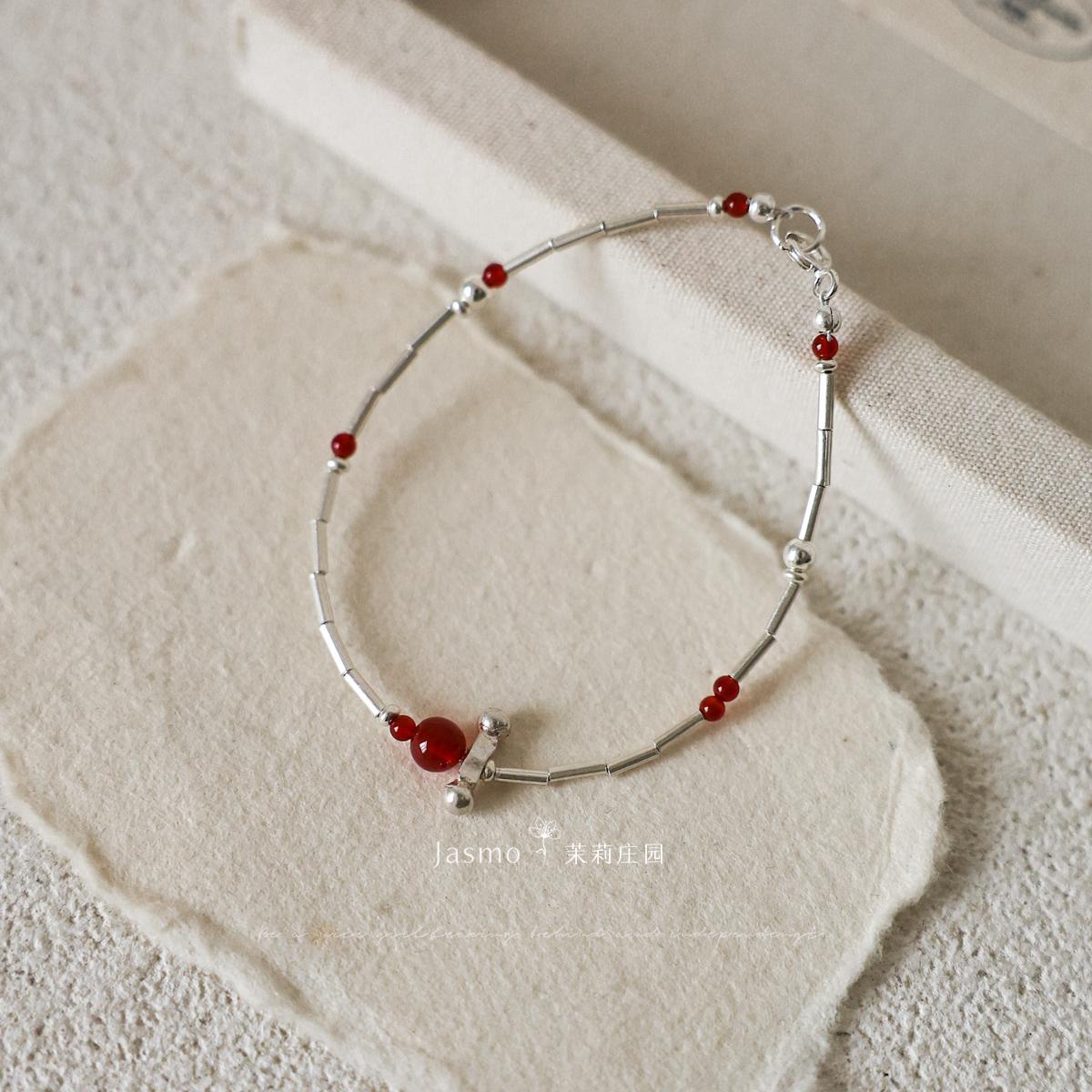 JASMO原创小众设计天然石红玛瑙本命红色高级感气质泰银银手链女