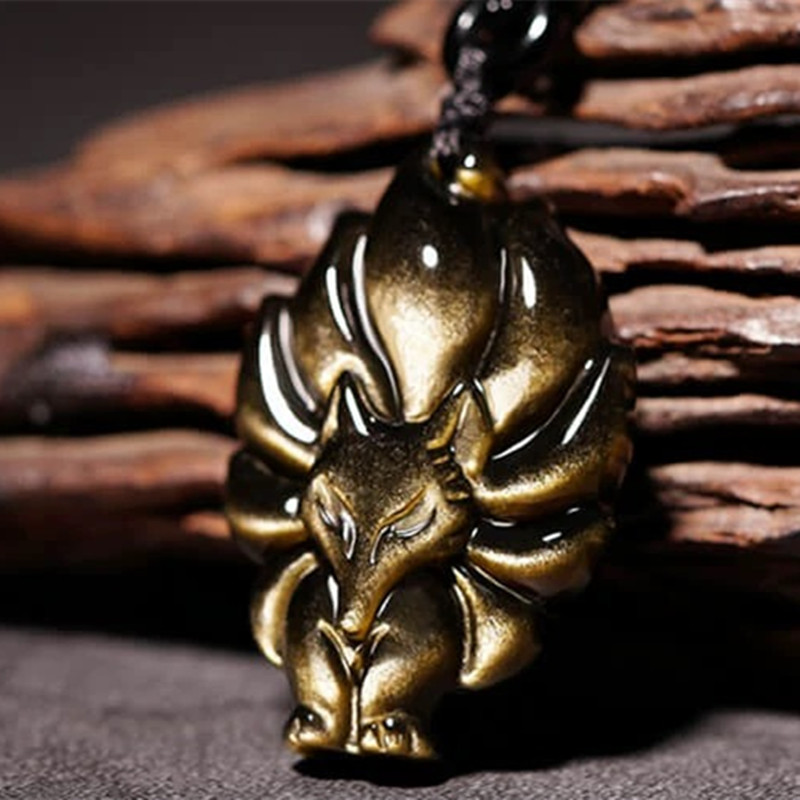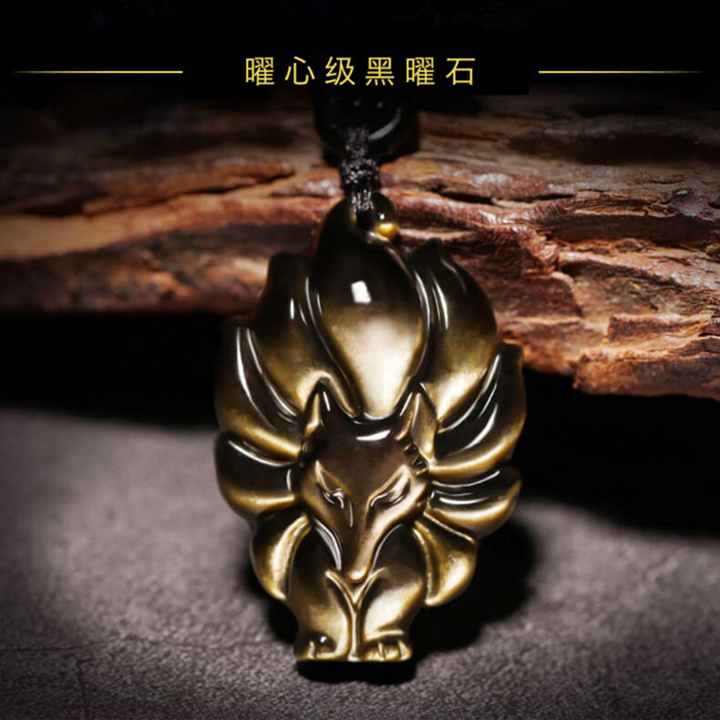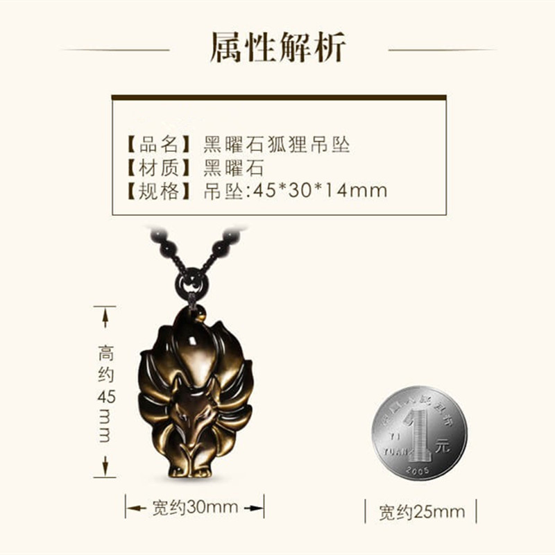 天然黑曜石九尾狐吊坠女水晶金曜石小狐狸项链男挂件饰品礼物转运