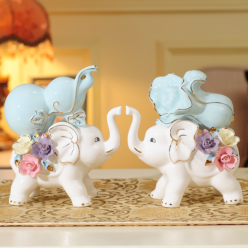 陶瓷大象摆件招财象镇宅一对家里家居酒柜装饰品客厅乔迁新居礼品