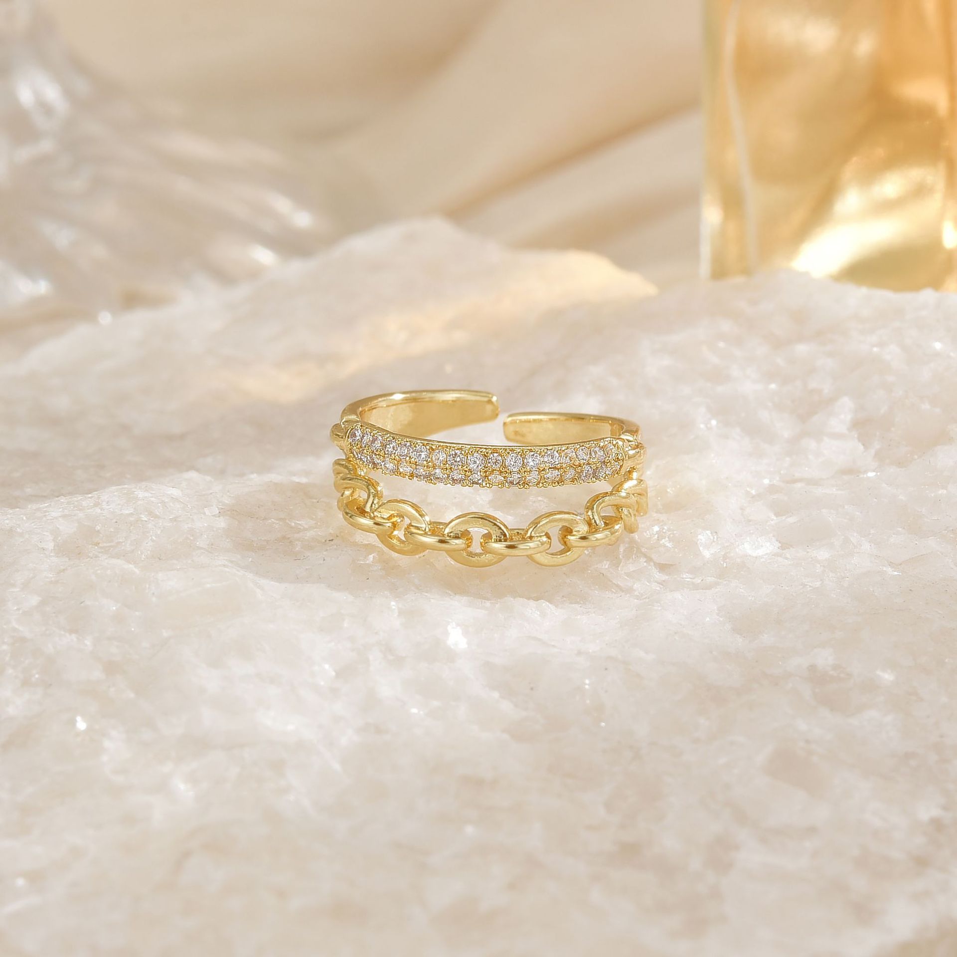 轻奢小众高级设计感微镶锆石女开口可调节食指戒指环小方糖