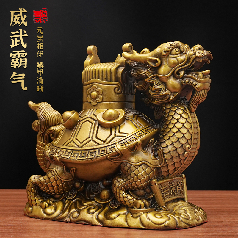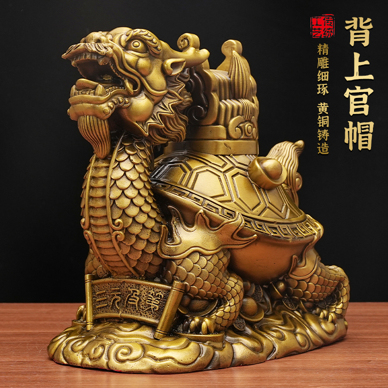 三元及第龙龟黄铜官帽龙龟摆件工艺品
