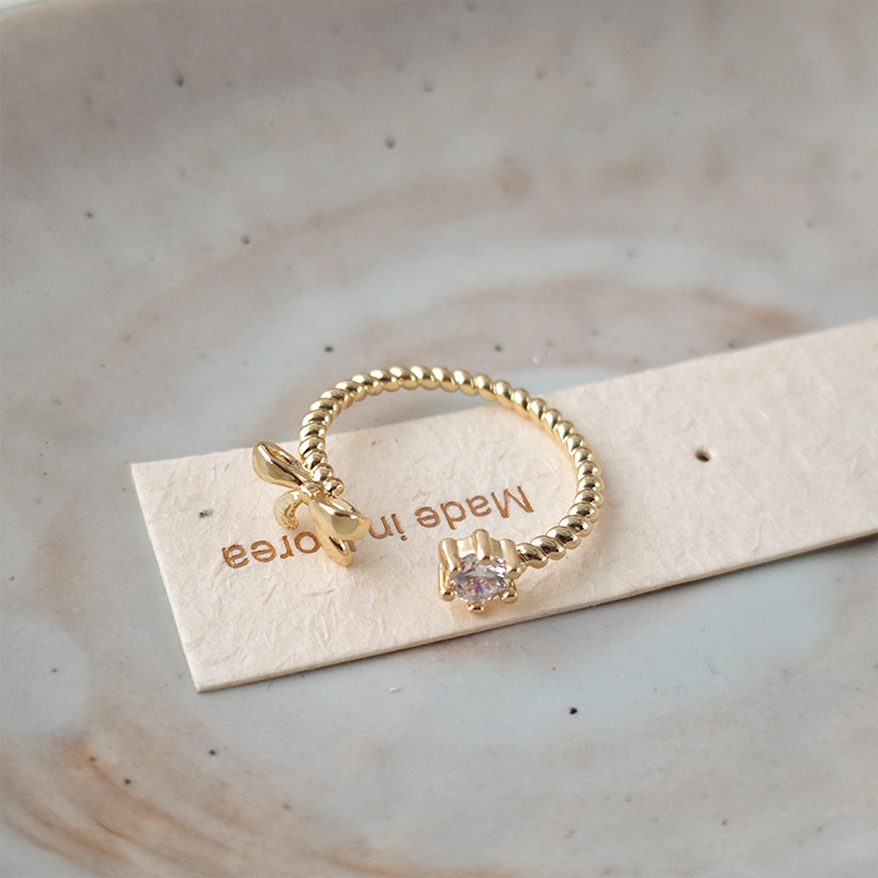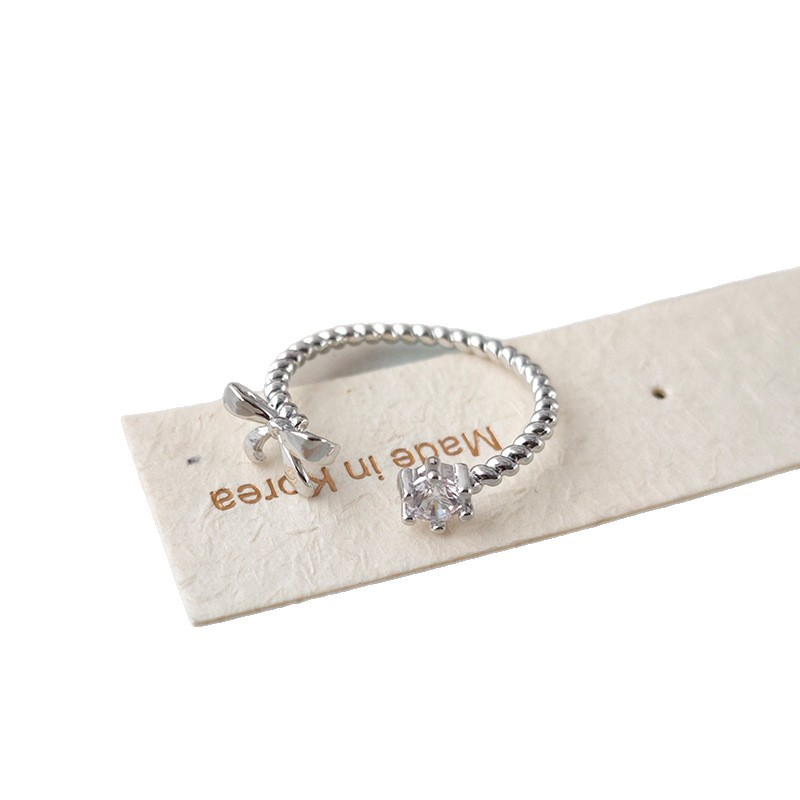 蝴蝶结水钻戒指女小众设计个性温柔气质简约高级感轻奢开口食指戒