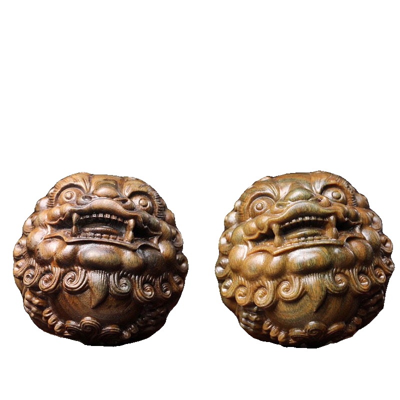 天然绿檀木雕貔貅保健球手把件狮子头木质手球按摩转运父亲节礼物