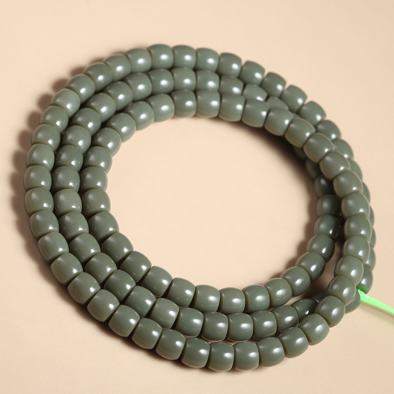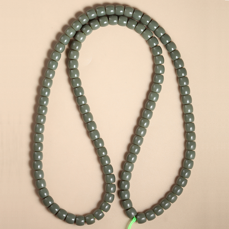 新疆天然和田玉一细料青玉沙枣青直切极限弧108佛珠手串8/7mm手链