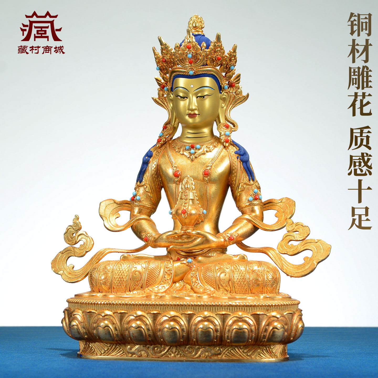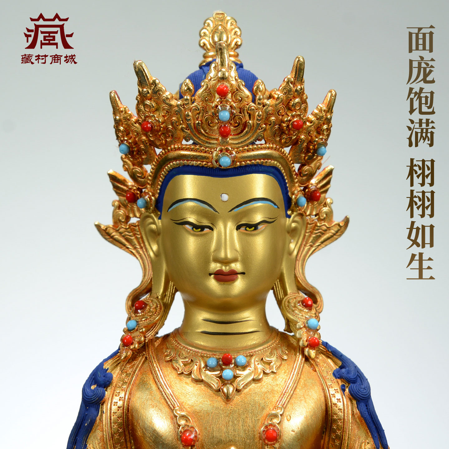 藏村全鎏金《常寿佛》室内家用《长寿佛》铜佛像桌面装饰摆件