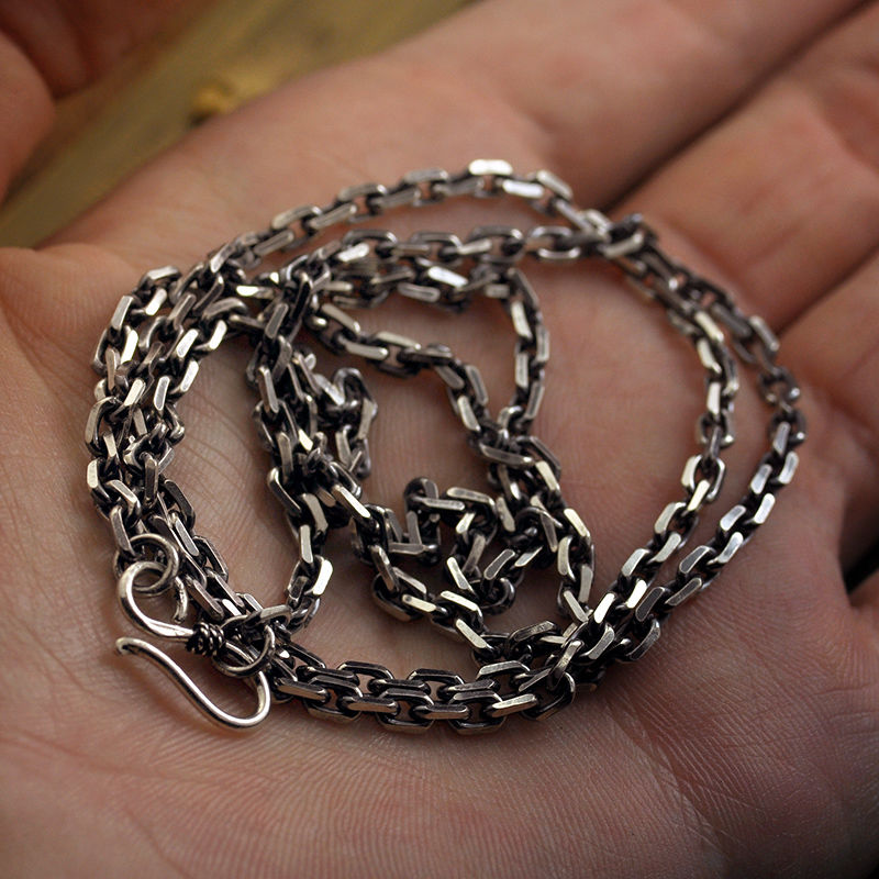 925纯银 3mm太角链 5mm做旧复古泰银锁骨项链男女款链