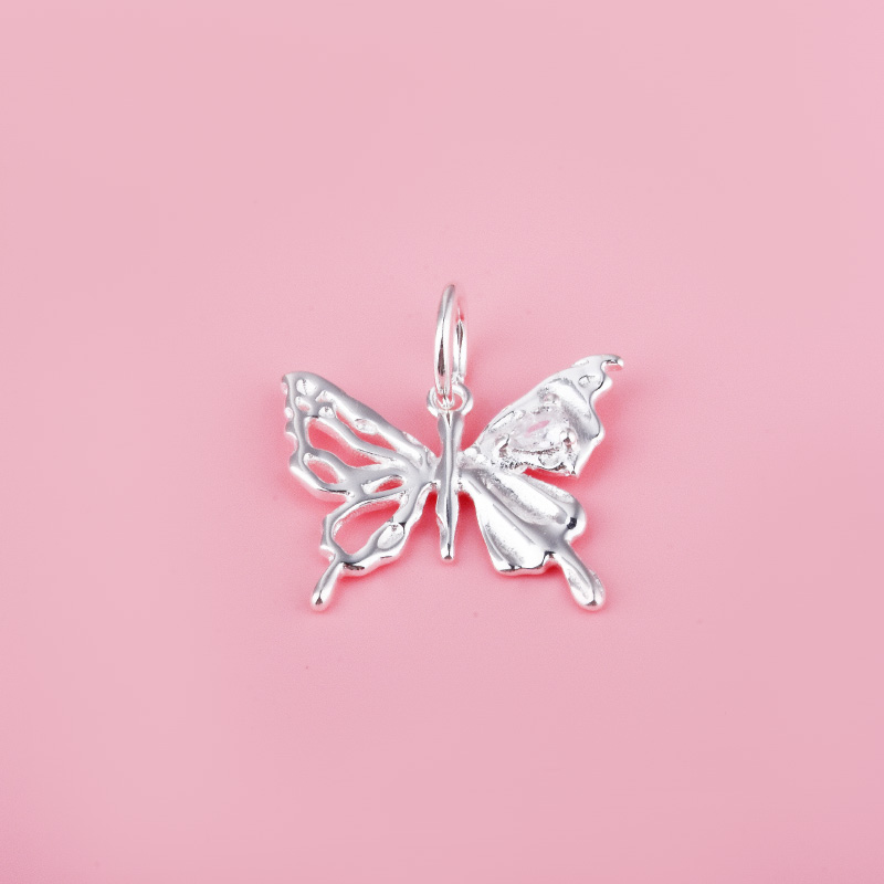甜美带锆石蝴蝶吊坠diy手链项链坠子串珠水晶珍珠挂件银饰材料