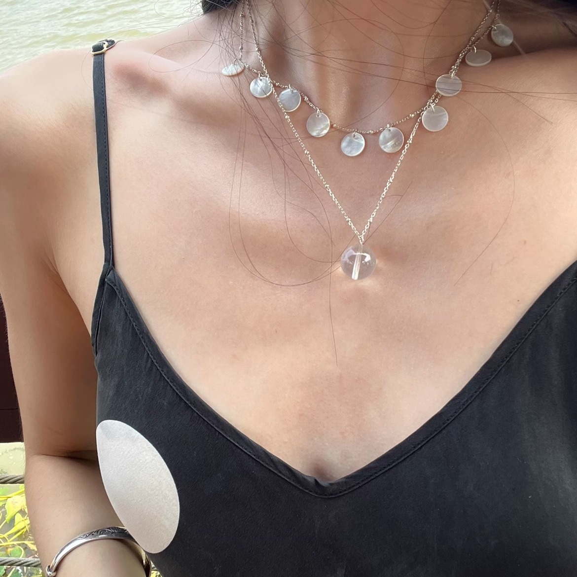 银色圆贝串珠项链女2025新爆款吊坠轻奢小众设计高级感锁骨链配饰