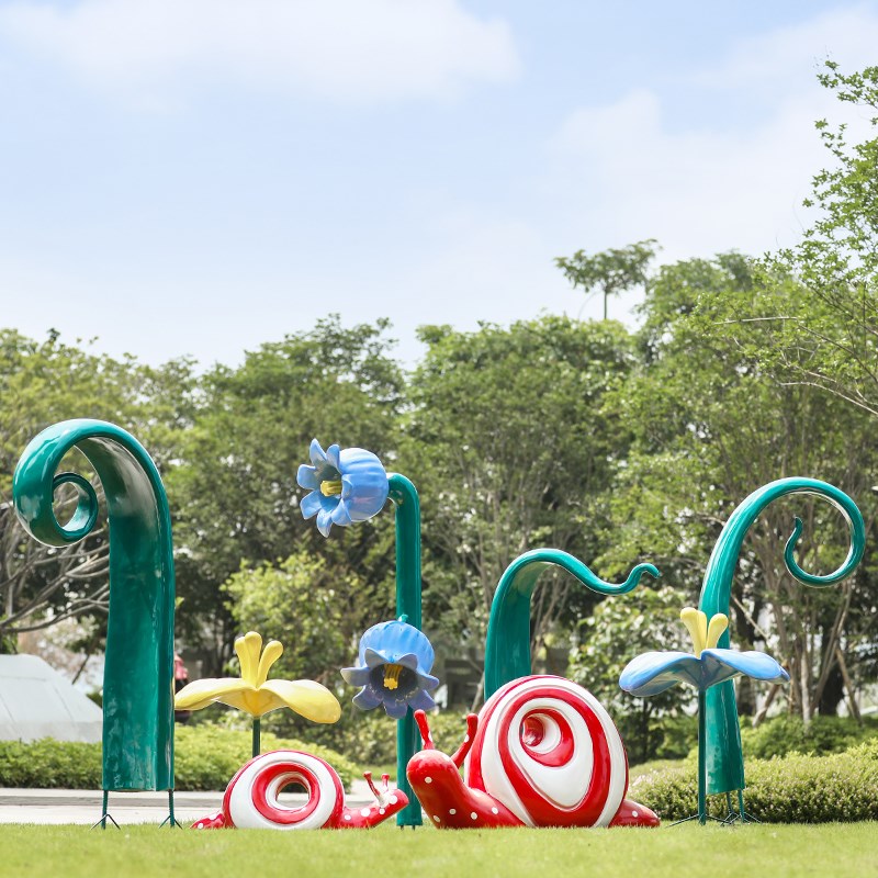户外发光网红大蜗牛玻璃钢雕塑园林景观小区植物T草羊动物装饰摆