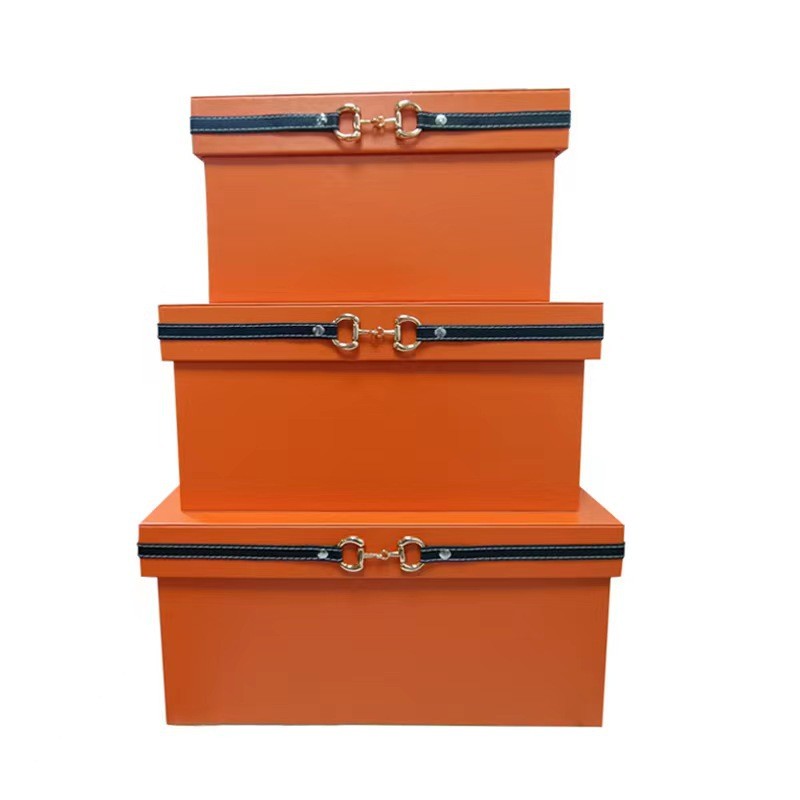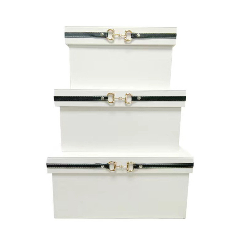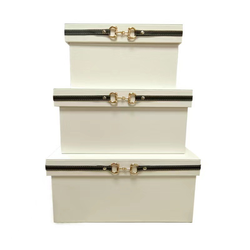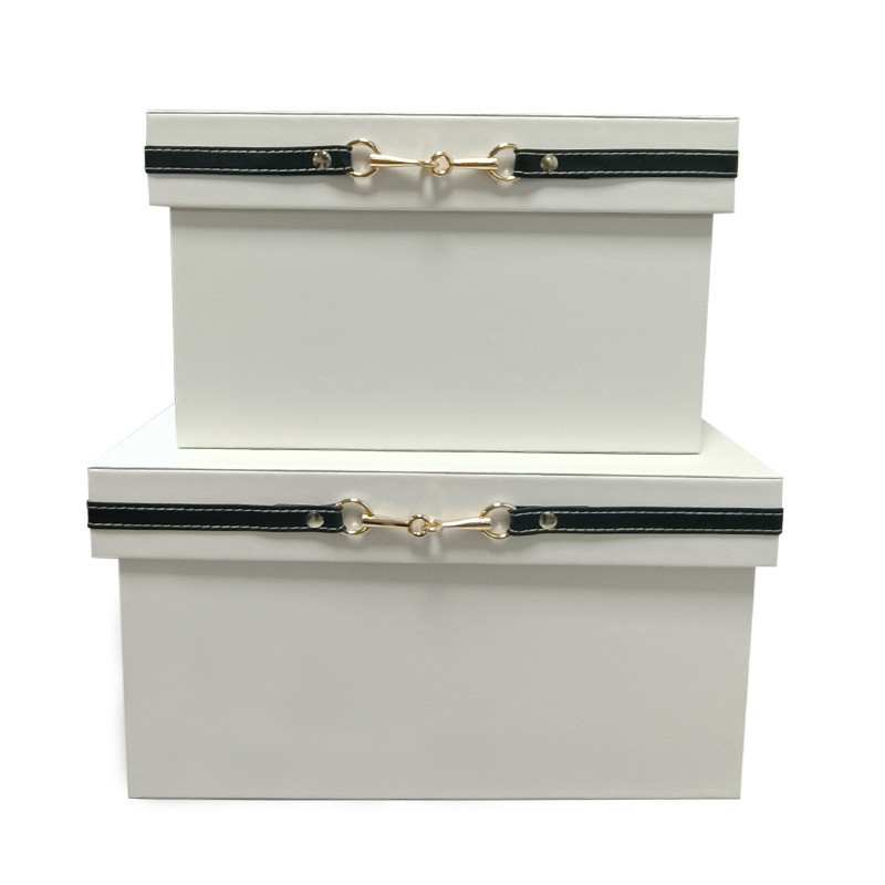大容量金属扣装饰时尚百搭收纳盒皮质家居储物盒样板间衣帽间摆件