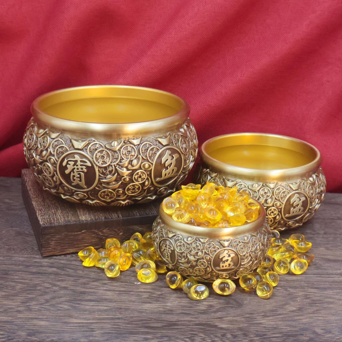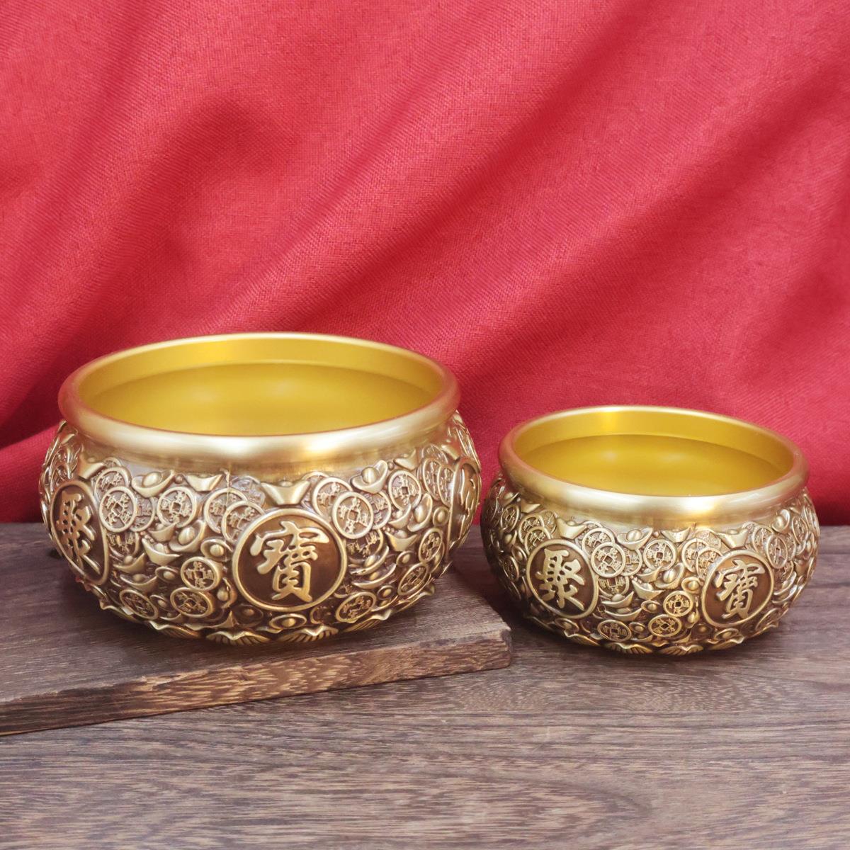 黄铜钱币聚宝盆桌面摆件黄铜钱元宝客厅玄关财位前台办公室装饰品