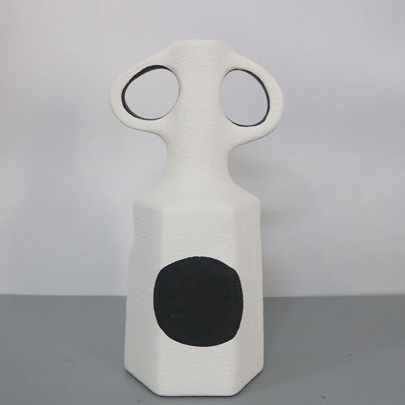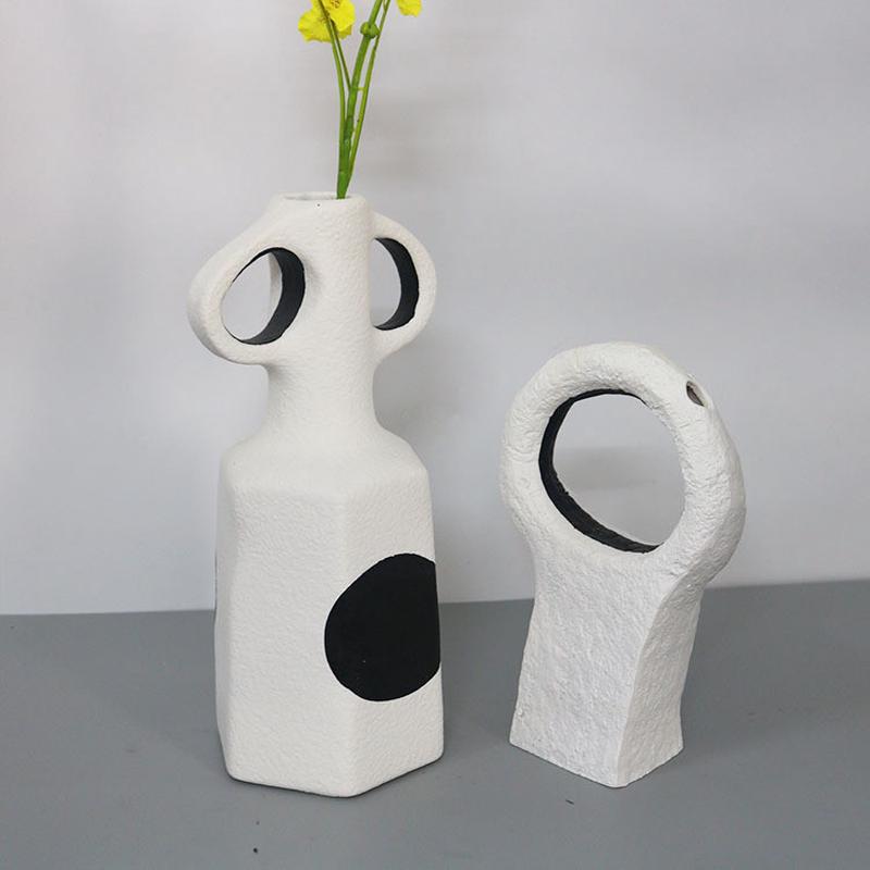 热销简约创意黑白装饰摆件树脂茶花花器现代几何样板间客厅桌面手
