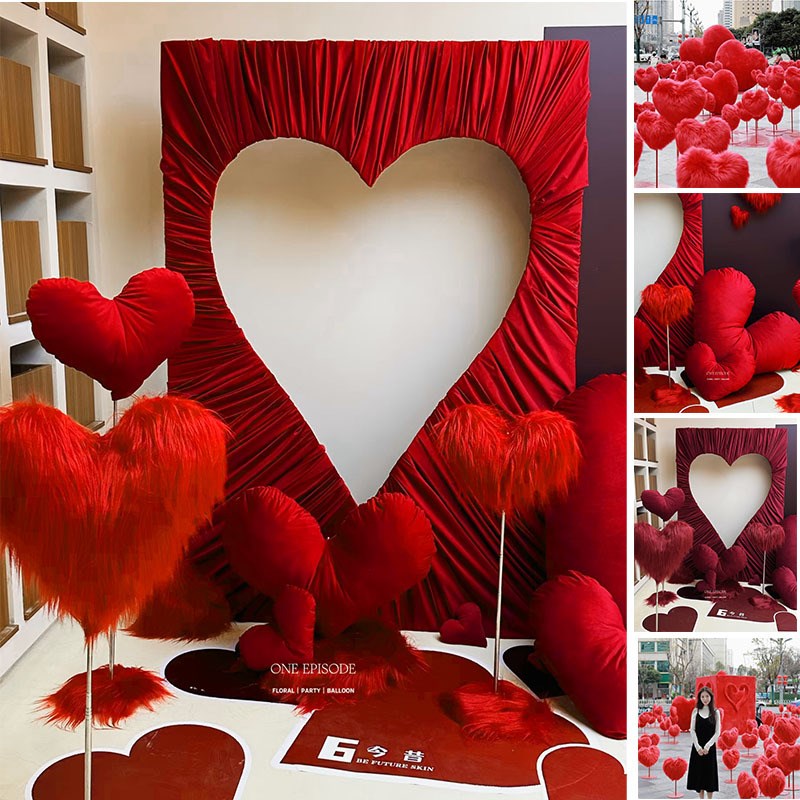 七夕大红色爱心摆件商场金店美容院节日装饰布置美陈打卡点背景墙