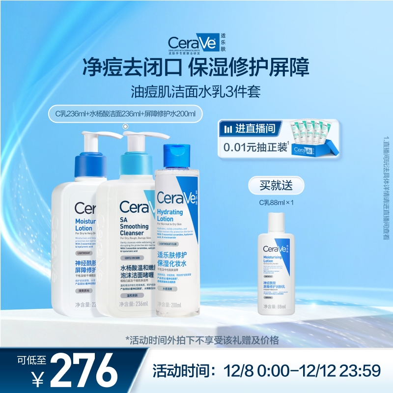 CeraVe适乐肤水乳霜洁面套装敏感肌男女士保湿补水修护肤官方正品
