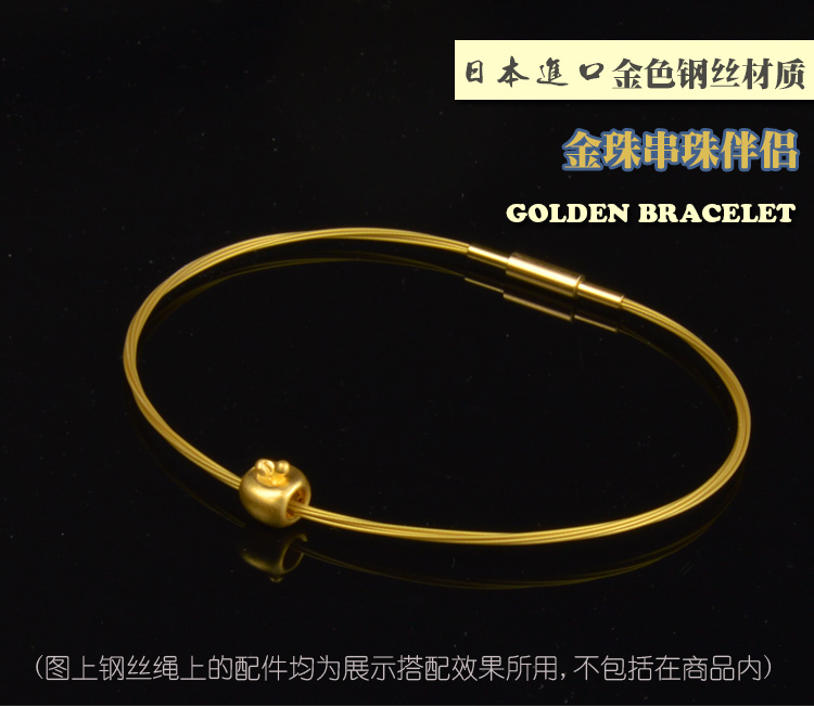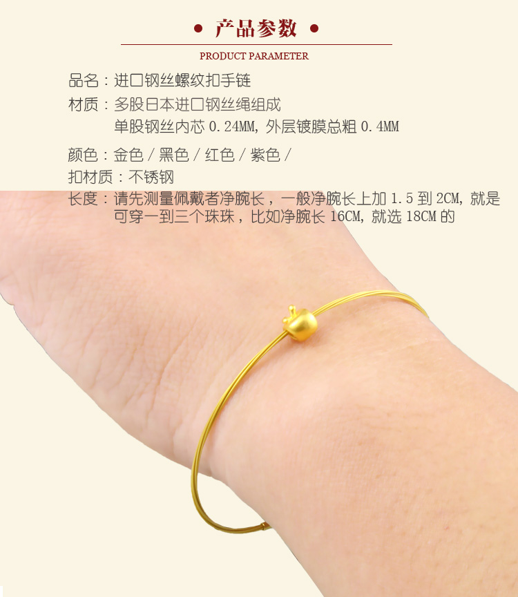 可串3d硬金超细钢丝手绳穿珠转运珠绳大米粒金珠红绳手链螺纹金色