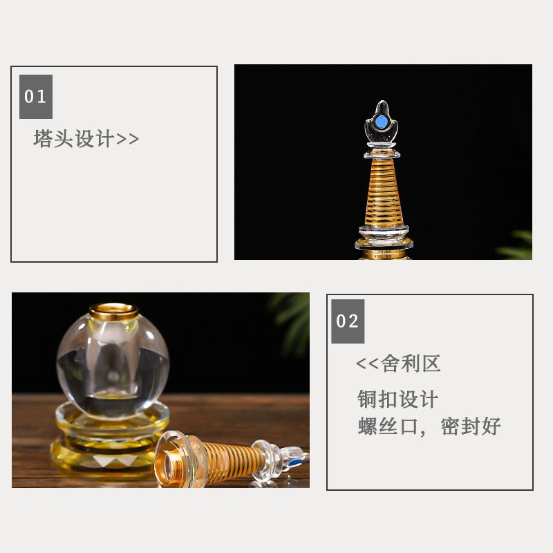 水晶舍利塔供奉桌面佛塔摆件装藏供养舍利子甘露丸菩提塔大中小号