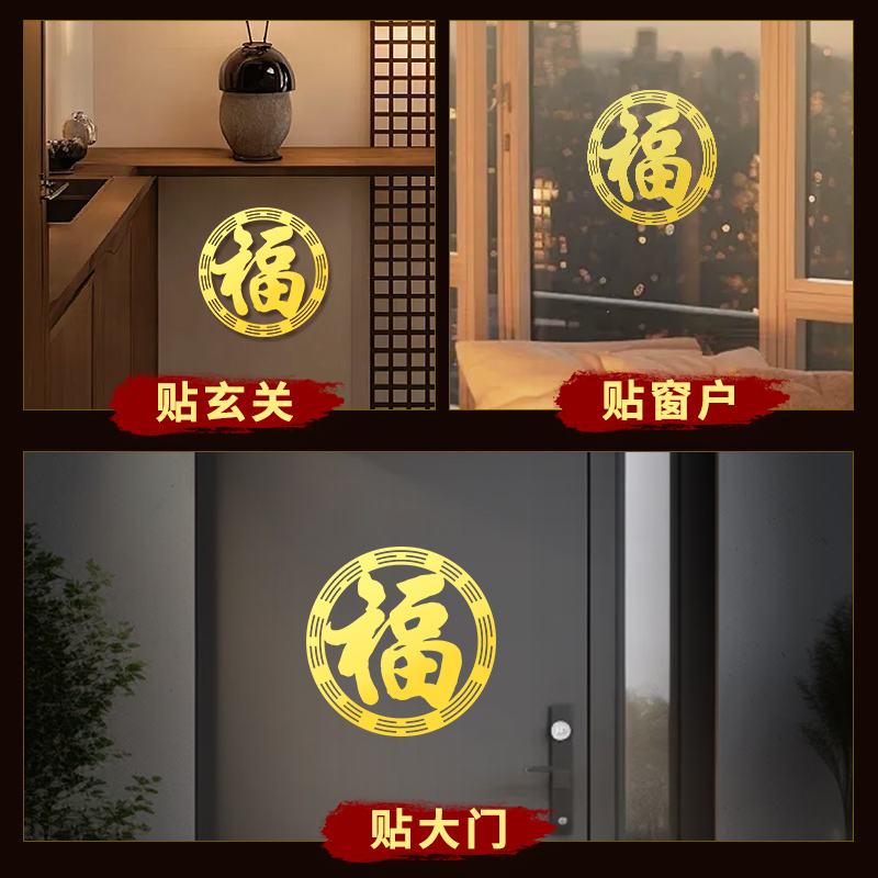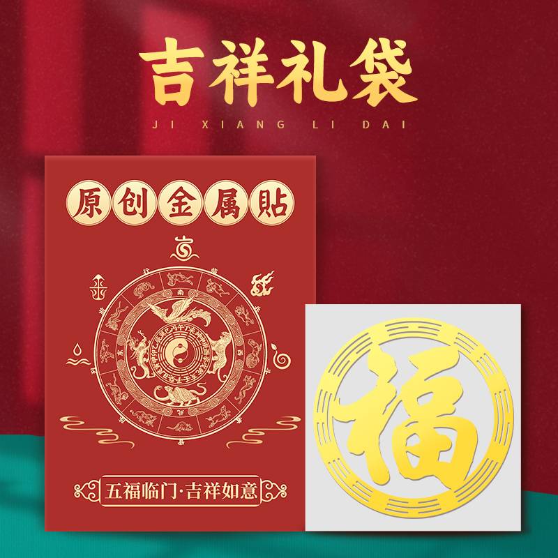 八卦福字贴金属金色黄色门贴纸大门挂饰玻璃小挂件风自粘水贴画片
