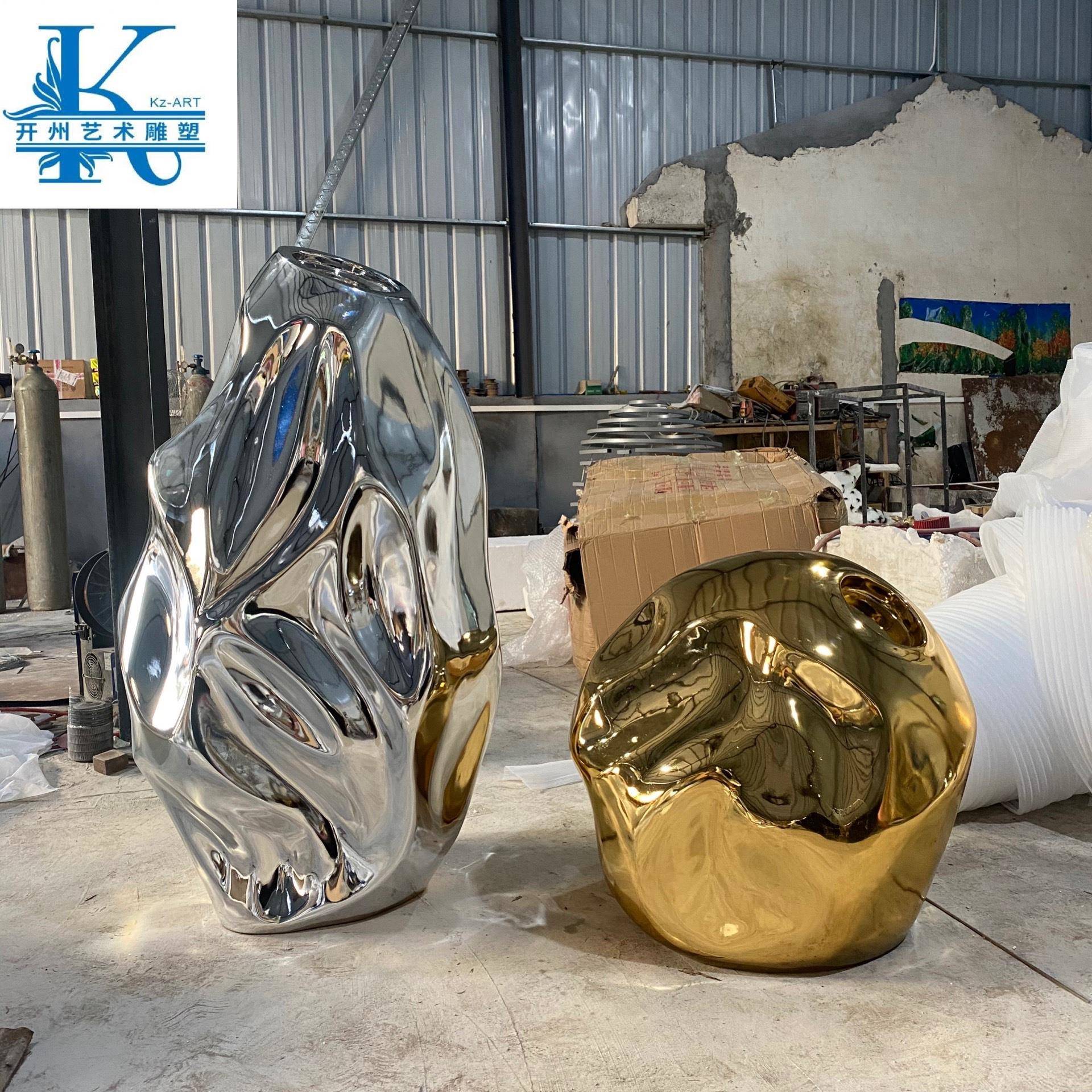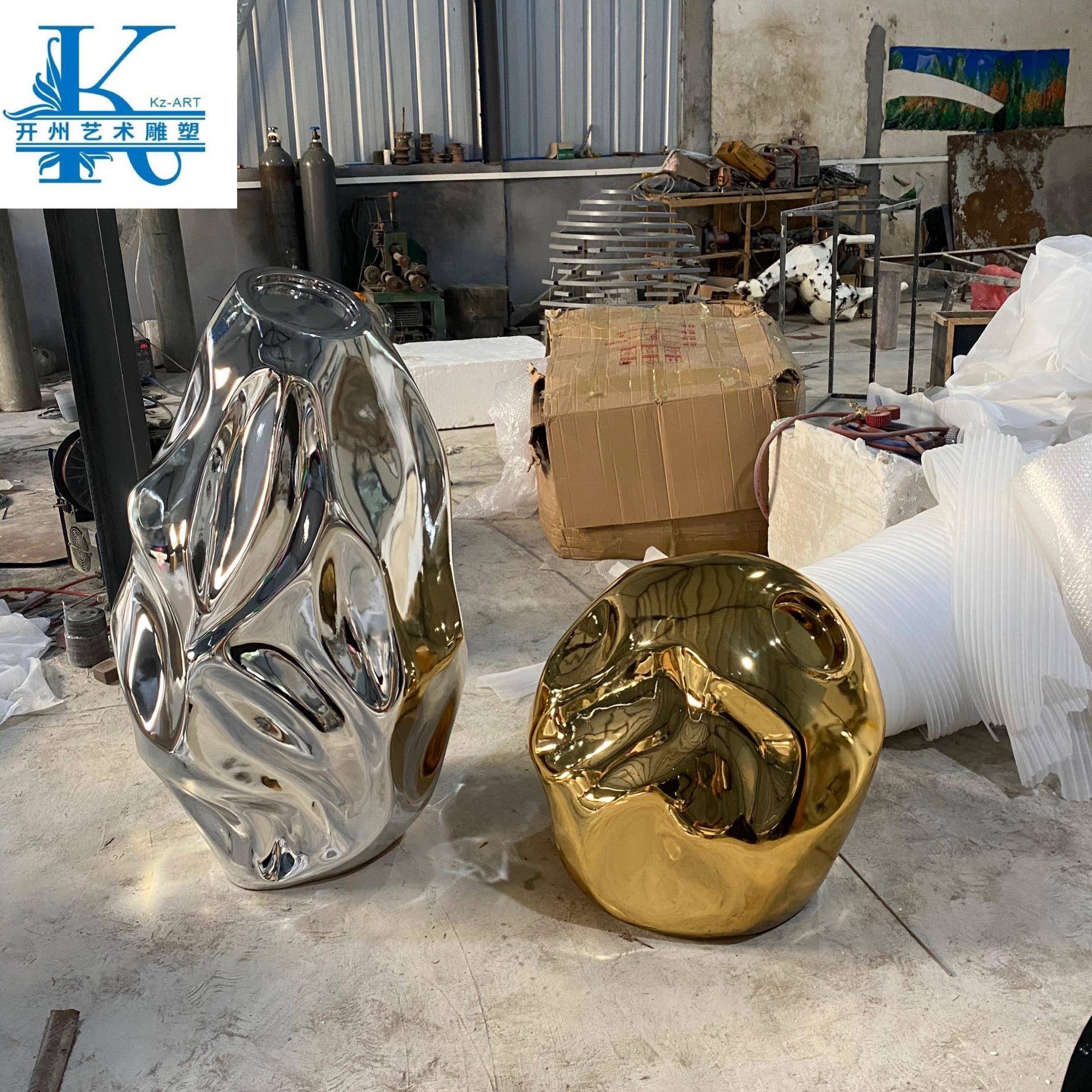 电镀石头别墅样板房间家居饰品现代简约玻璃钢抽象雕塑艺术品摆件
