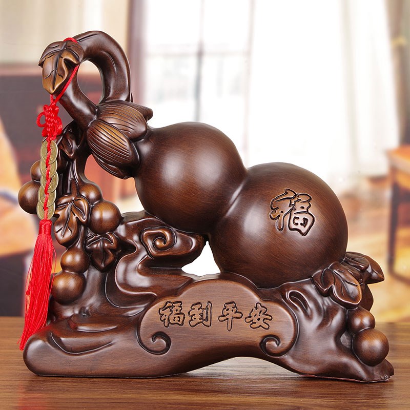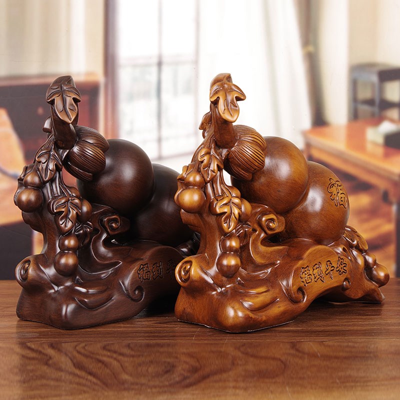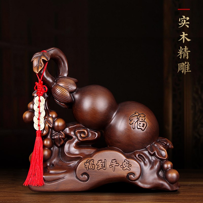 实木雕平葫安芦摆件客厅玄关博古架福字福禄摆饰新房手工艺送礼品