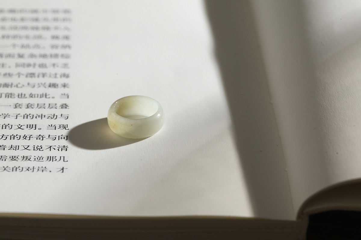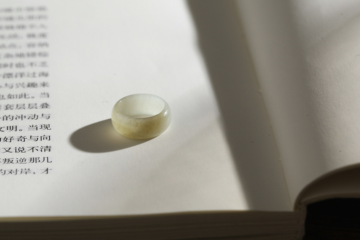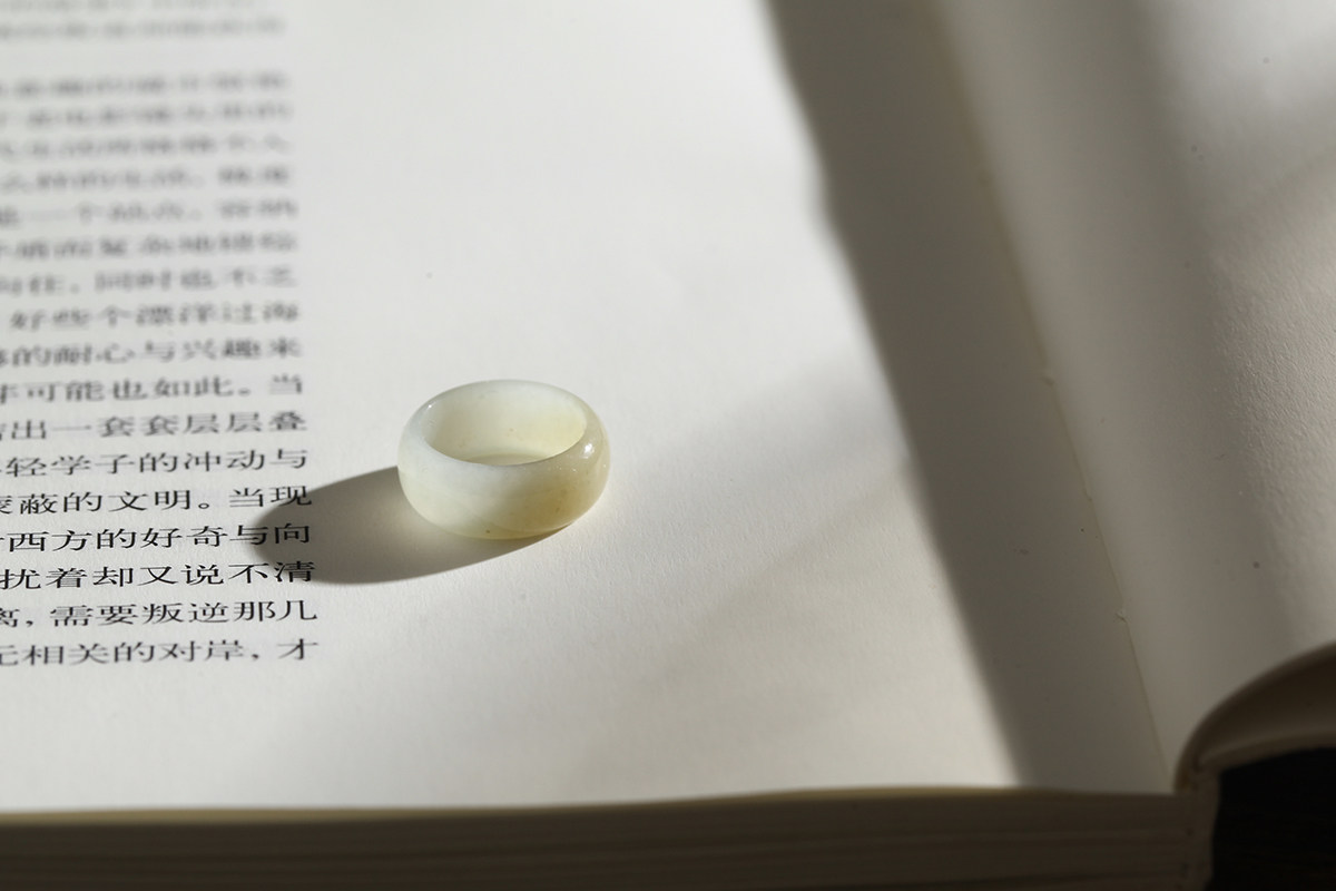 1号戒指 和田玉俄料糖白玉戒指 中宽圆弧泥鳅背小尺码指环 8712