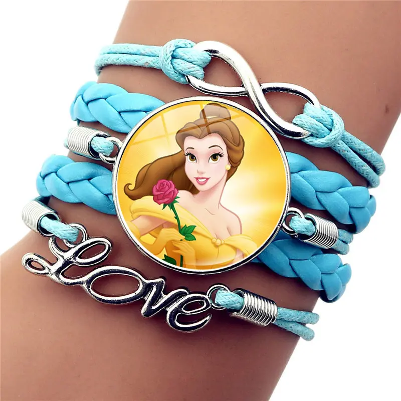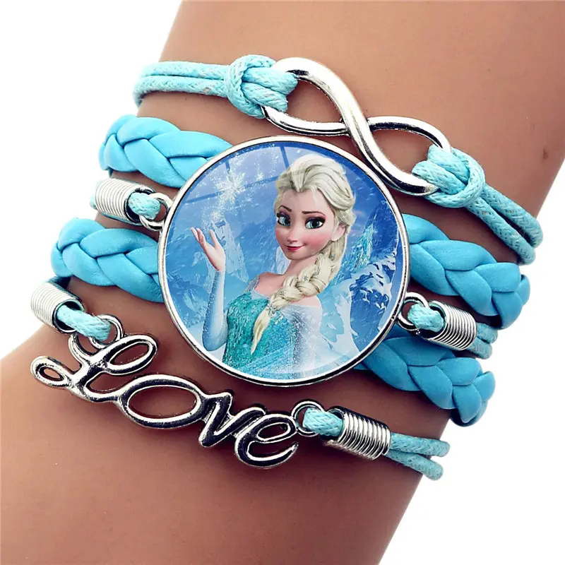 冰雪公主皮革手链卡通动漫白雪公主蓝色多层编织手链手饰品