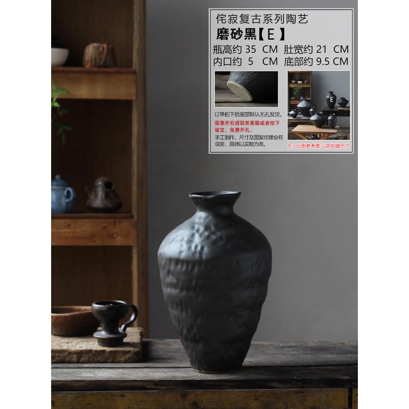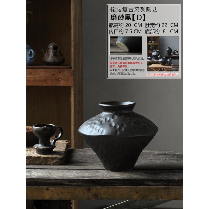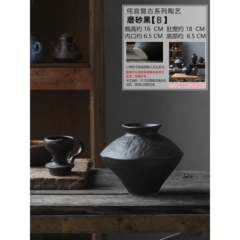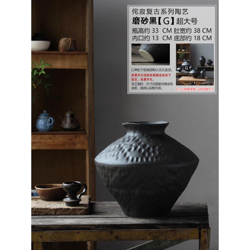 黑色粗陶罐子新中式复古禅意陶瓷花瓶摆件侘寂风民宿茶室酒店摆件