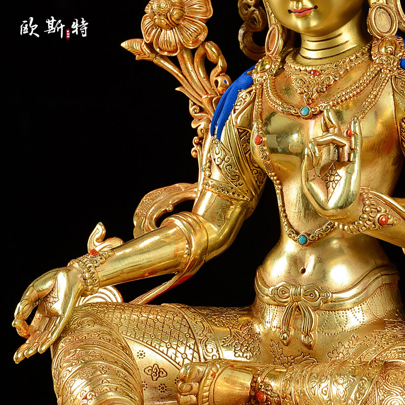 欧斯特绿度母铜像摆件西藏客厅居家玄关观音菩萨乔迁新居用品摆件