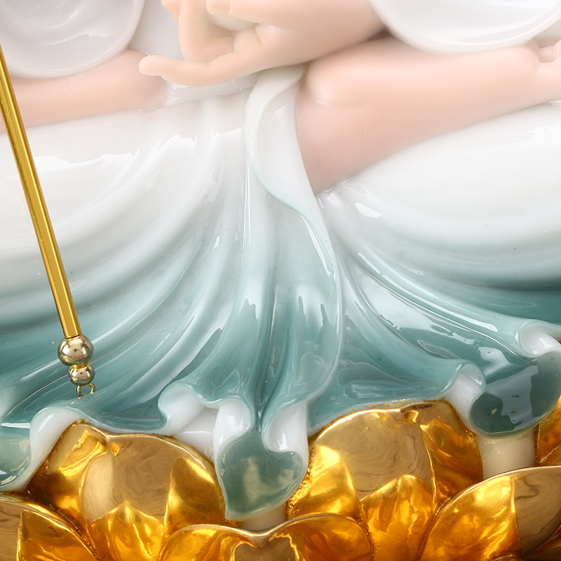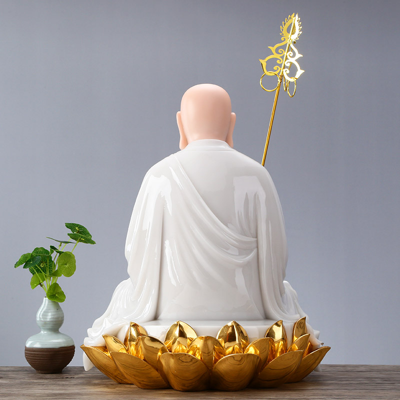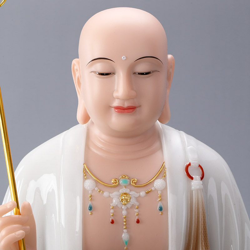 圆通佛具汉玉石粉地藏王佛像家用供奉坐莲地藏菩萨神像佛堂摆件