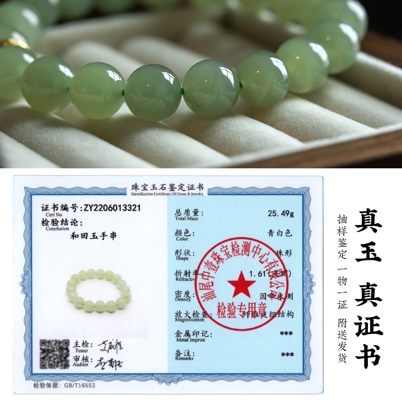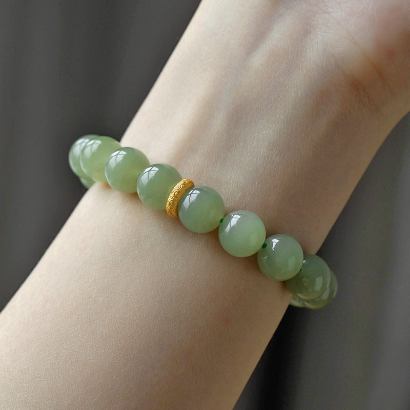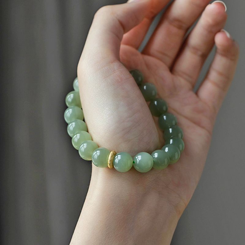 一兴天然和田玉手串绿葡萄圆珠串珠玉手链国风女生日礼物送女友